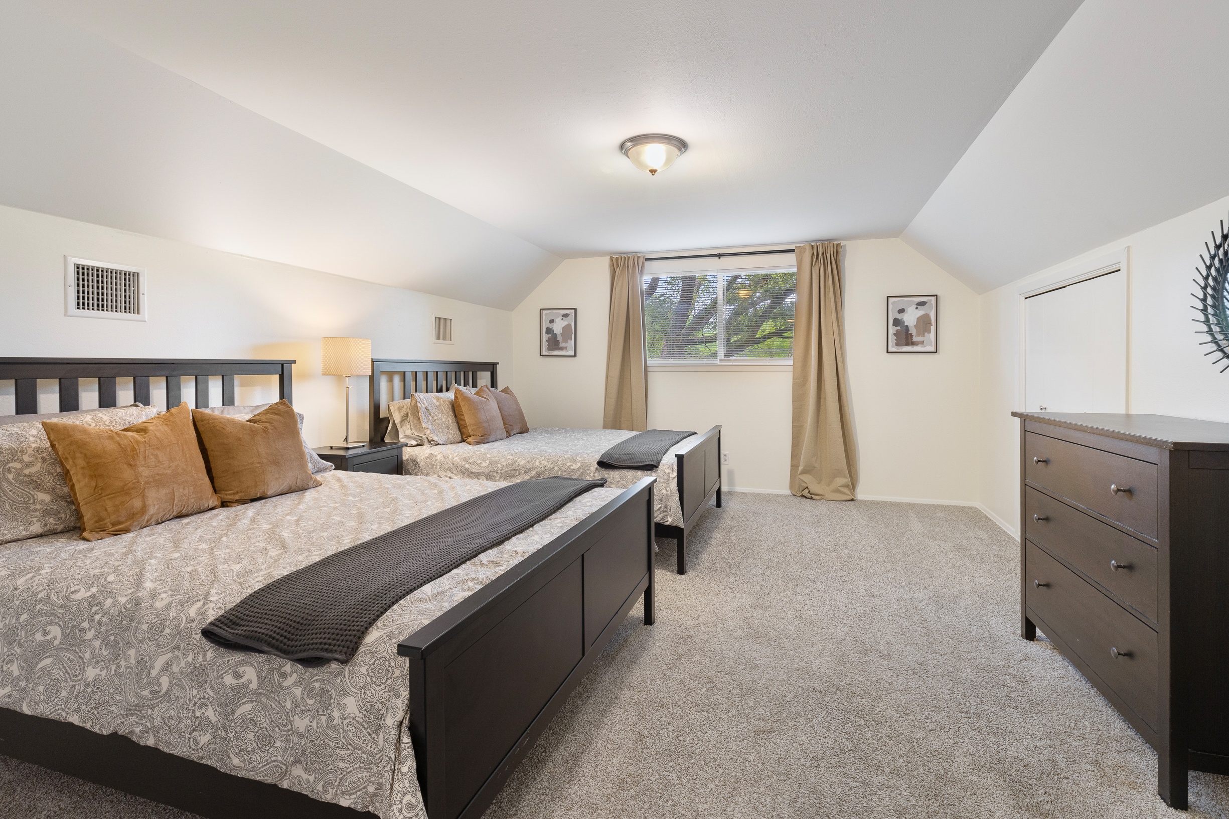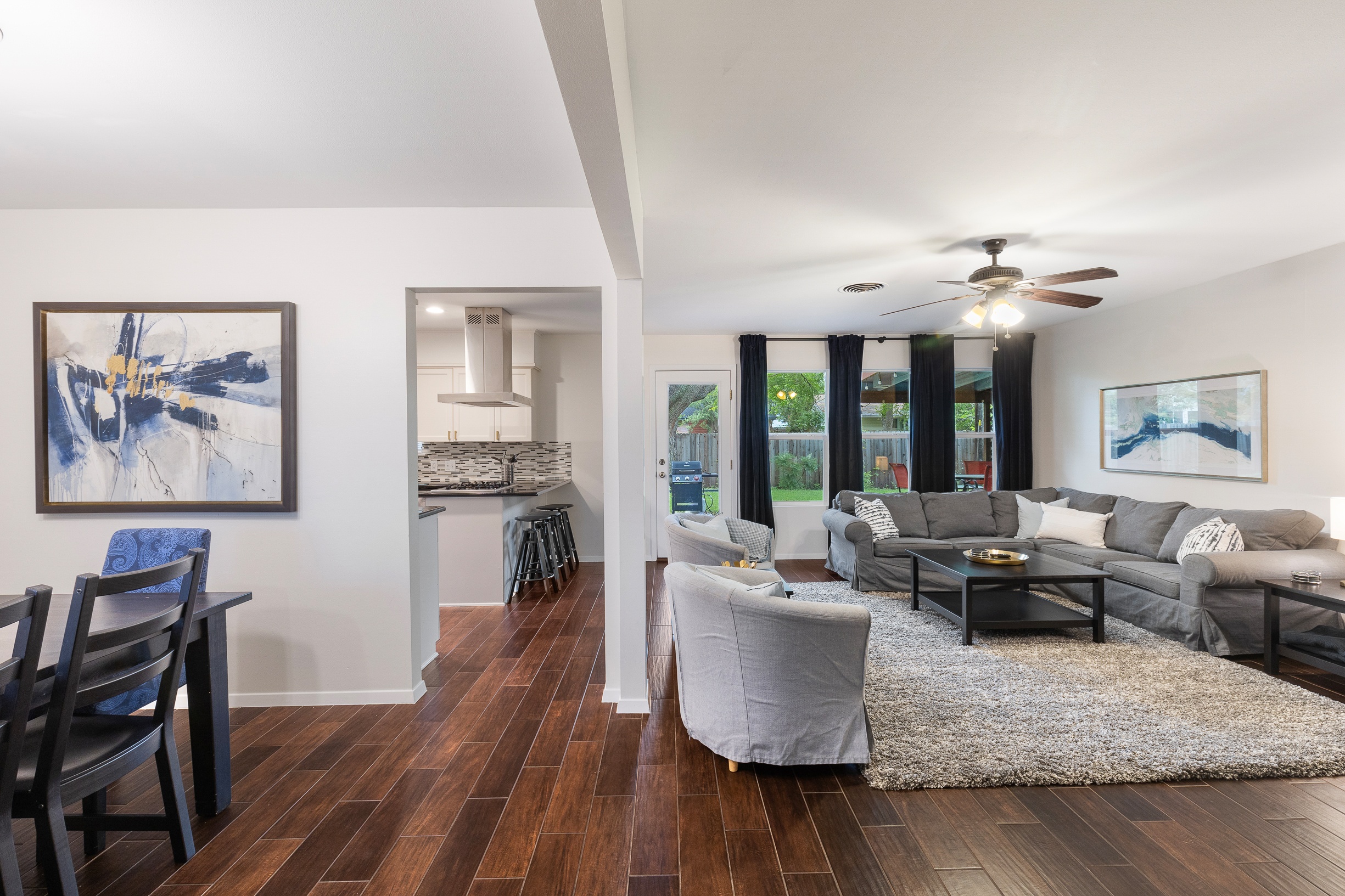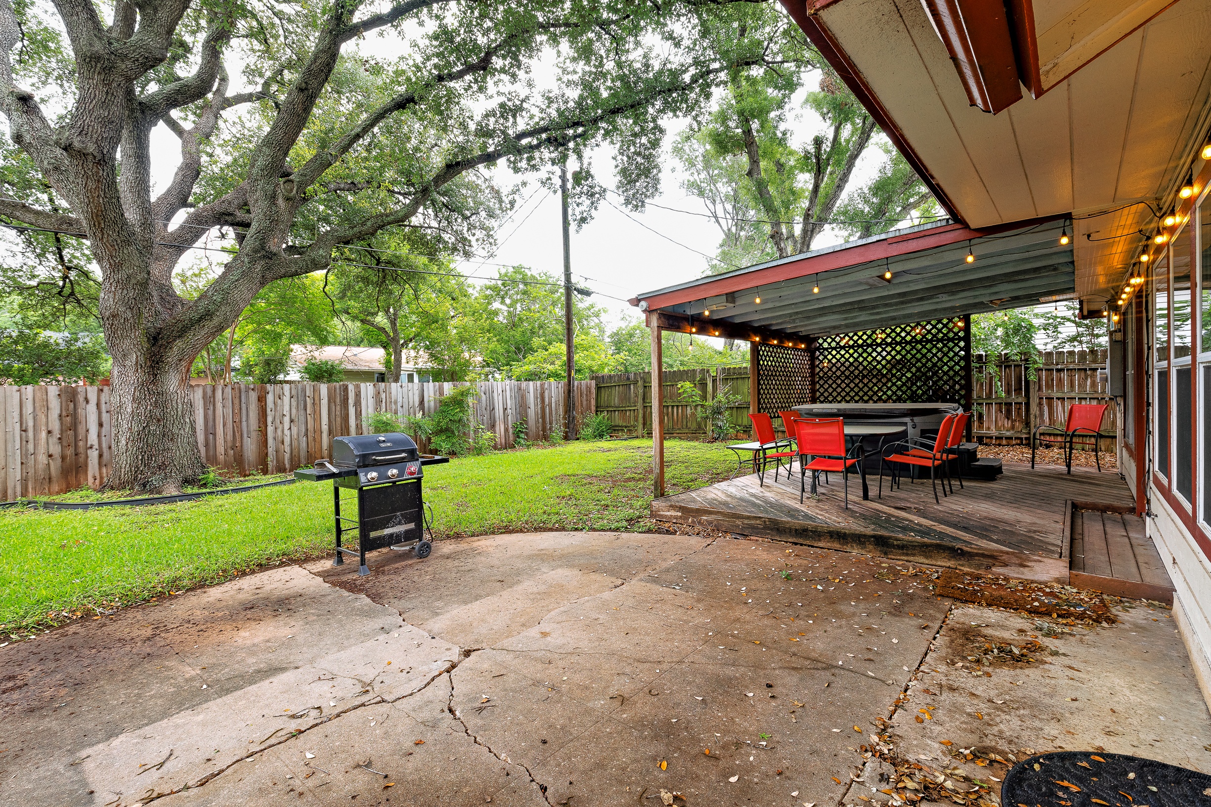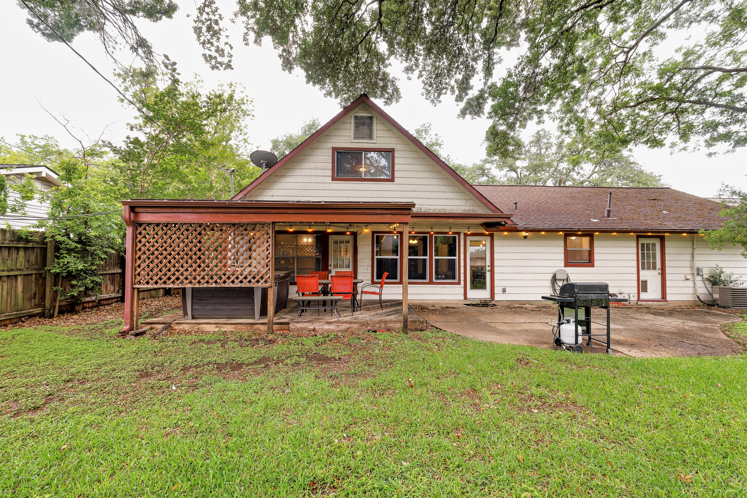 Please note that a $300 refundable security deposit is charged in addition to the total shown. Dogs are allowed with prior approval and a one time $240 pet fee. UPDATED LIVING ARRANGEMENT: The corner sofa pictured in the photos has been replaced with a regular 3 seat sofa and 2 additional chairs for seating in the main living room to allow for a more comfortable seating arrangement. This 1960s home has been partially updated over the years and offers a comfortable, no-frills stay for larger families or groups needing plenty of beds and room. While several areas were refreshed 15–20 years ago, this is still an older home with its share of quirks—such as a smaller oven, a laundry area located in part of the garage, and the occasional 2-prong outlet. That said, guests consistently appreciate the spacious layout, multiple living areas, large bedrooms, and convenient location. The space The house is approximately 2,300 square feet across two stories, with 4 bedrooms and 2 living rooms. The primary bedroom is on the first floor and features a separate vanity area, walk in closet, and direct access to the outdoor hot tub and patio. Both the 2nd living room and the primary bedroom have desks and wifi. There is a washer/dryer in the laundry room, and a large fenced yard with beautiful mature trees. The home is located just a few blocks of the intersection of Burnet Rd & Anderson Ln, putting you close to a variety of restaurants, shops, and public transit options. Sleeping Arrangements - Master Bedroom: King bed 2nd Bedroom: King bed 3rd Bedroom: King bed 4th Bedroom: 2 Queen beds Guest access Guests are renting the entire home. Other things to note Things to Note: Maximum occupancy is 8 adults, or 10 people total. We do have pack & play crib available for guest use, but sheets for it are not provided. The home has a two car garage, with one side available for guest use. It will not fit all cars, especially larger or longer vehicles. The kitchen oven is smaller than a standard oven.