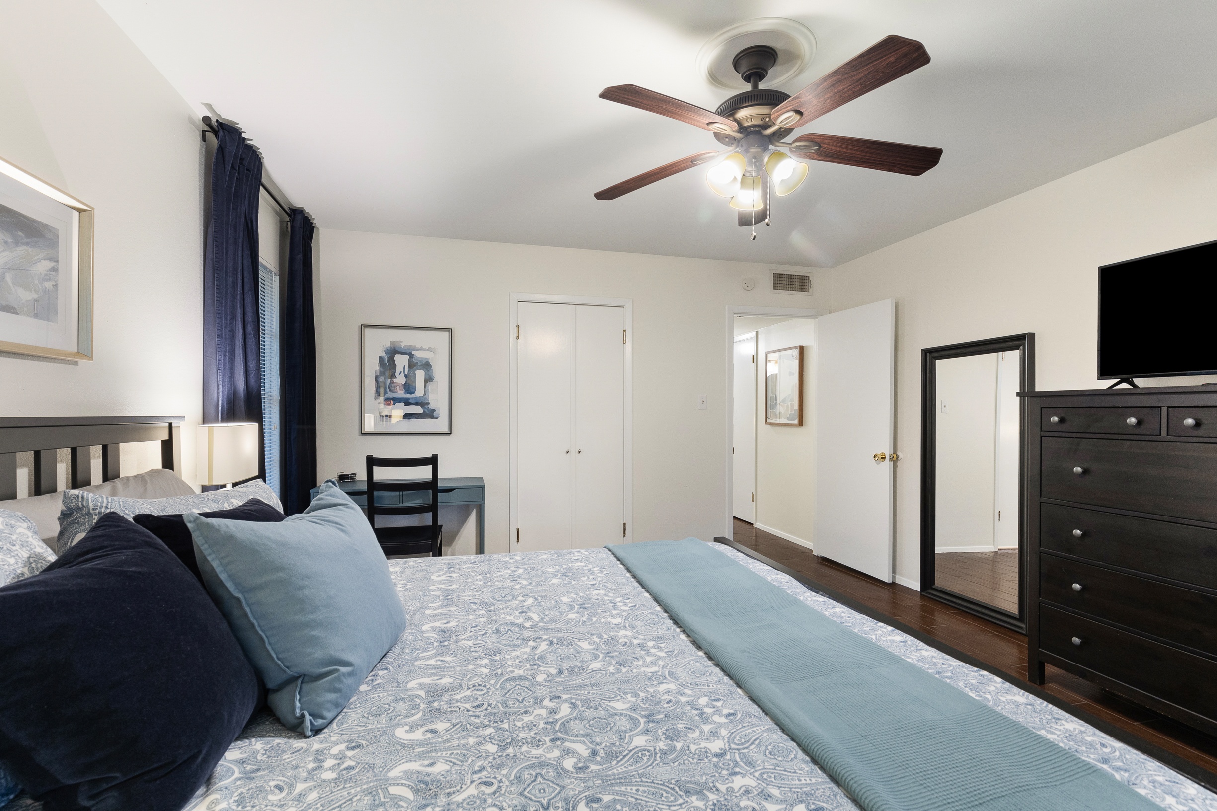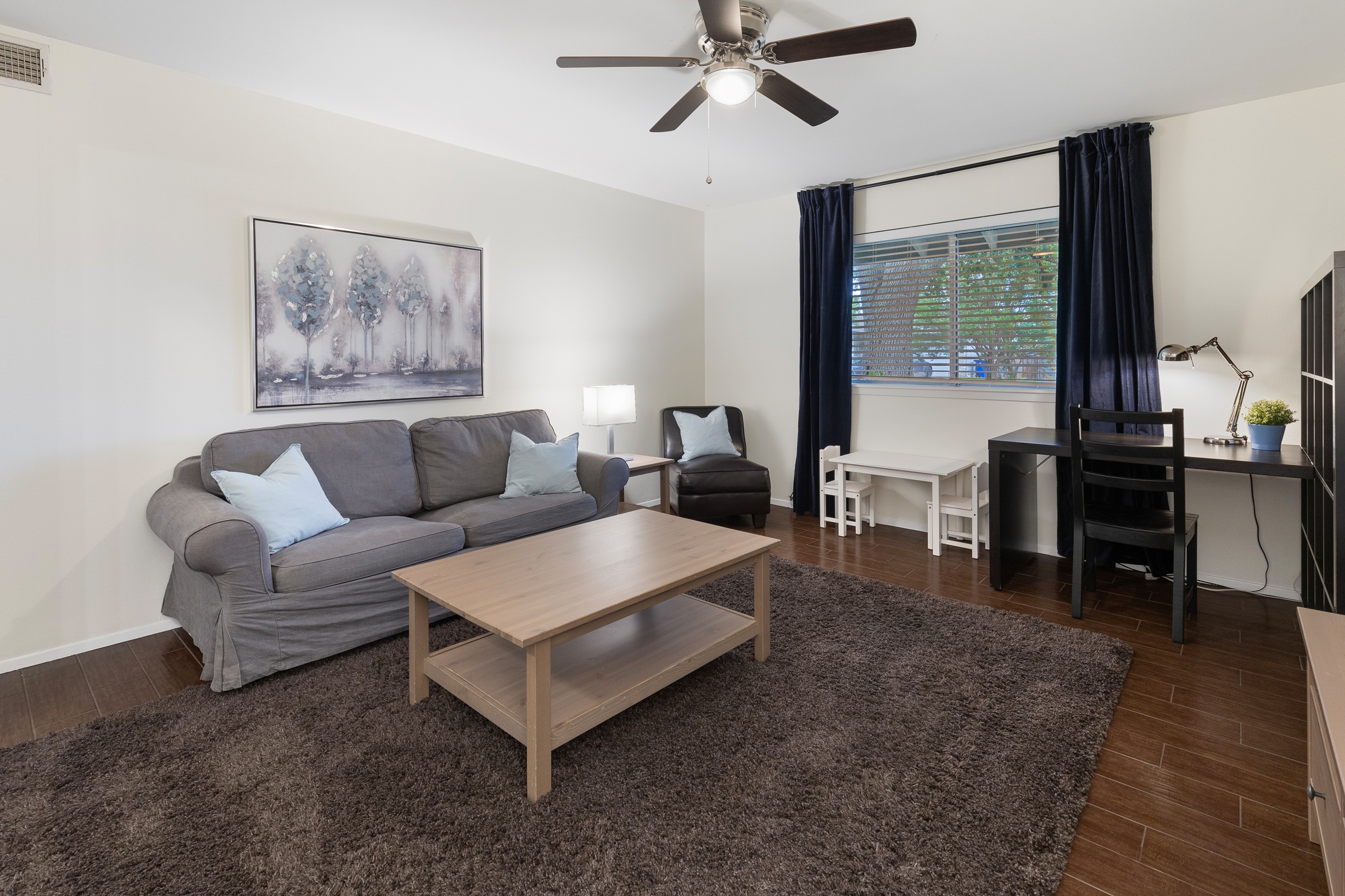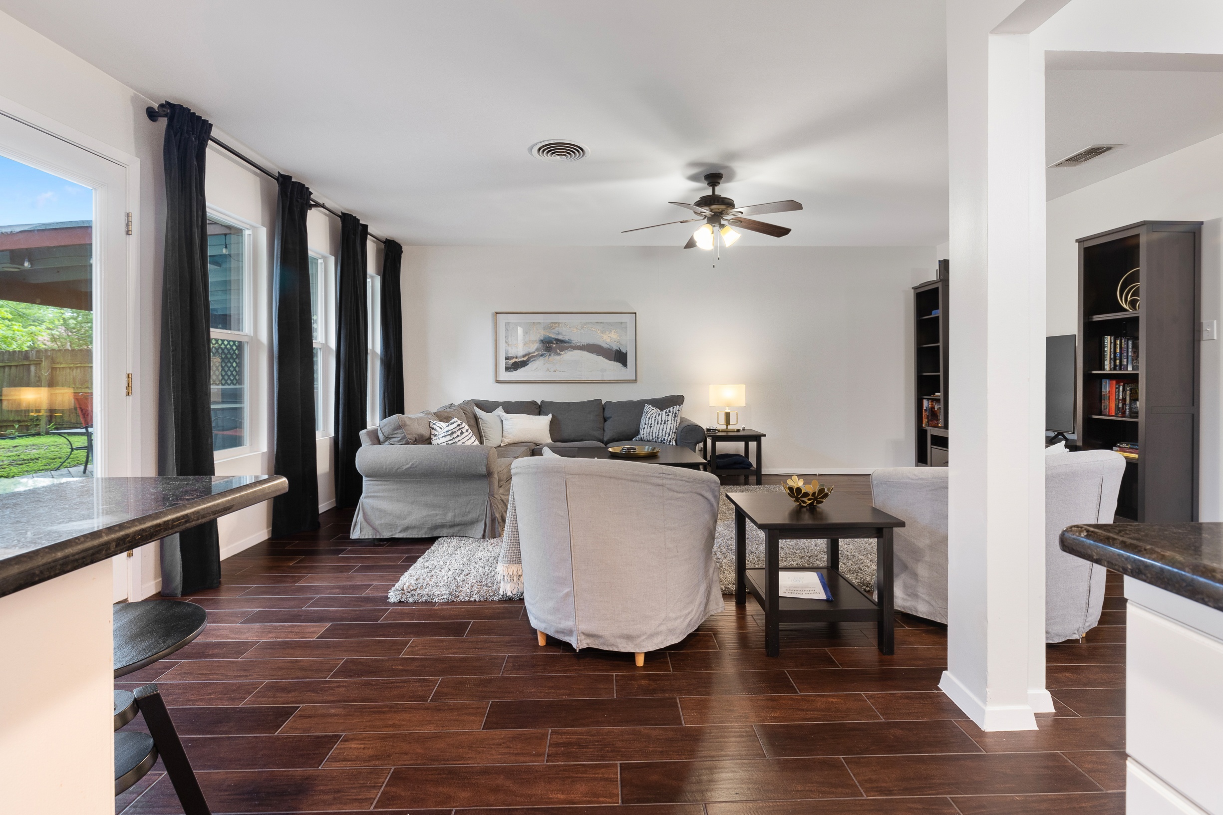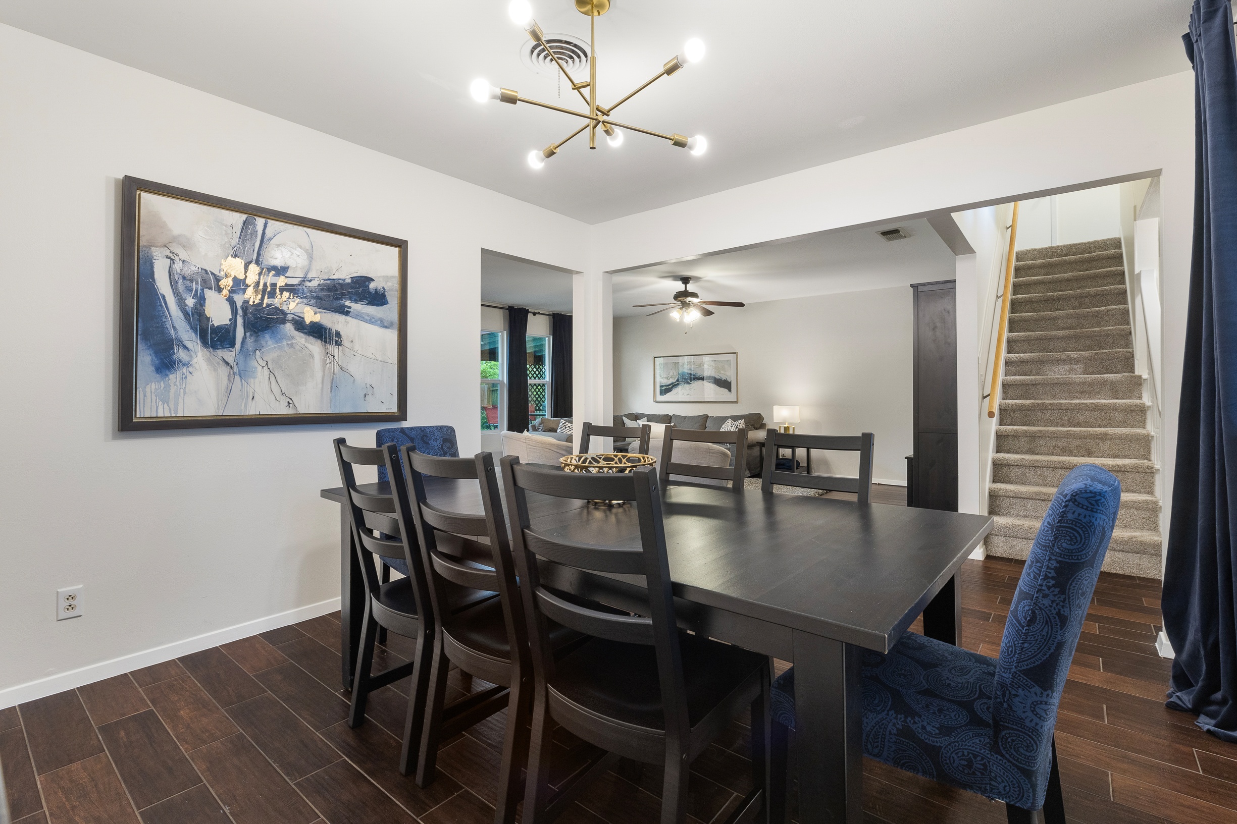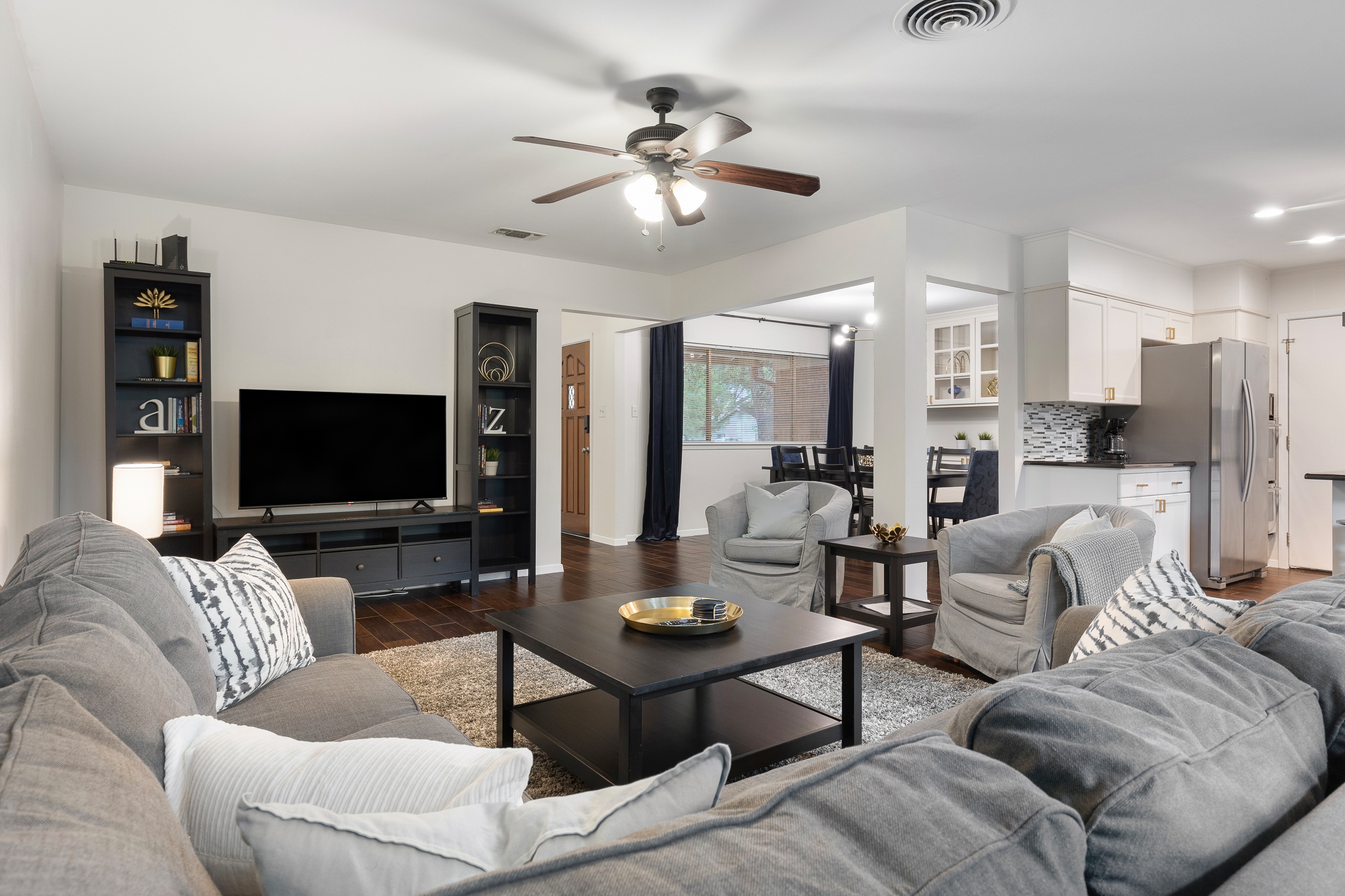 Please note that a $300 refundable security deposit is charged in addition to the total shown. Dogs are allowed with prior approval and a one time $240 pet fee. UPDATED LIVING ARRANGEMENT: The corner sofa pictured in the photos has been replaced with a regular 3 seat sofa and 2 additional chairs for seating in the main living room to allow for a more comfortable seating arrangement. This 1960s home has been partially updated over the years and offers a comfortable, no-frills stay for larger families or groups needing plenty of beds and room. While several areas were refreshed 15–20 years ago, this is still an older home with its share of quirks—such as a smaller oven, a laundry area located in part of the garage, and the occasional 2-prong outlet. That said, guests consistently appreciate the spacious layout, multiple living areas, large bedrooms, and convenient location. The space The house is approximately 2,300 square feet across two stories, with 4 bedrooms and 2 living rooms. The primary bedroom is on the first floor and features a separate vanity area, walk in closet, and direct access to the outdoor hot tub and patio. Both the 2nd living room and the primary bedroom have desks and wifi. There is a washer/dryer in the laundry room, and a large fenced yard with beautiful mature trees. The home is located just a few blocks of the intersection of Burnet Rd & Anderson Ln, putting you close to a variety of restaurants, shops, and public transit options. Sleeping Arrangements - Master Bedroom: King bed 2nd Bedroom: King bed 3rd Bedroom: King bed 4th Bedroom: 2 Queen beds Guest access Guests are renting the entire home. Other things to note Things to Note: Maximum occupancy is 8 adults, or 10 people total. We do have pack & play crib available for guest use, but sheets for it are not provided. The home has a two car garage, with one side available for guest use. It will not fit all cars, especially larger or longer vehicles. The kitchen oven is smaller than a standard oven.