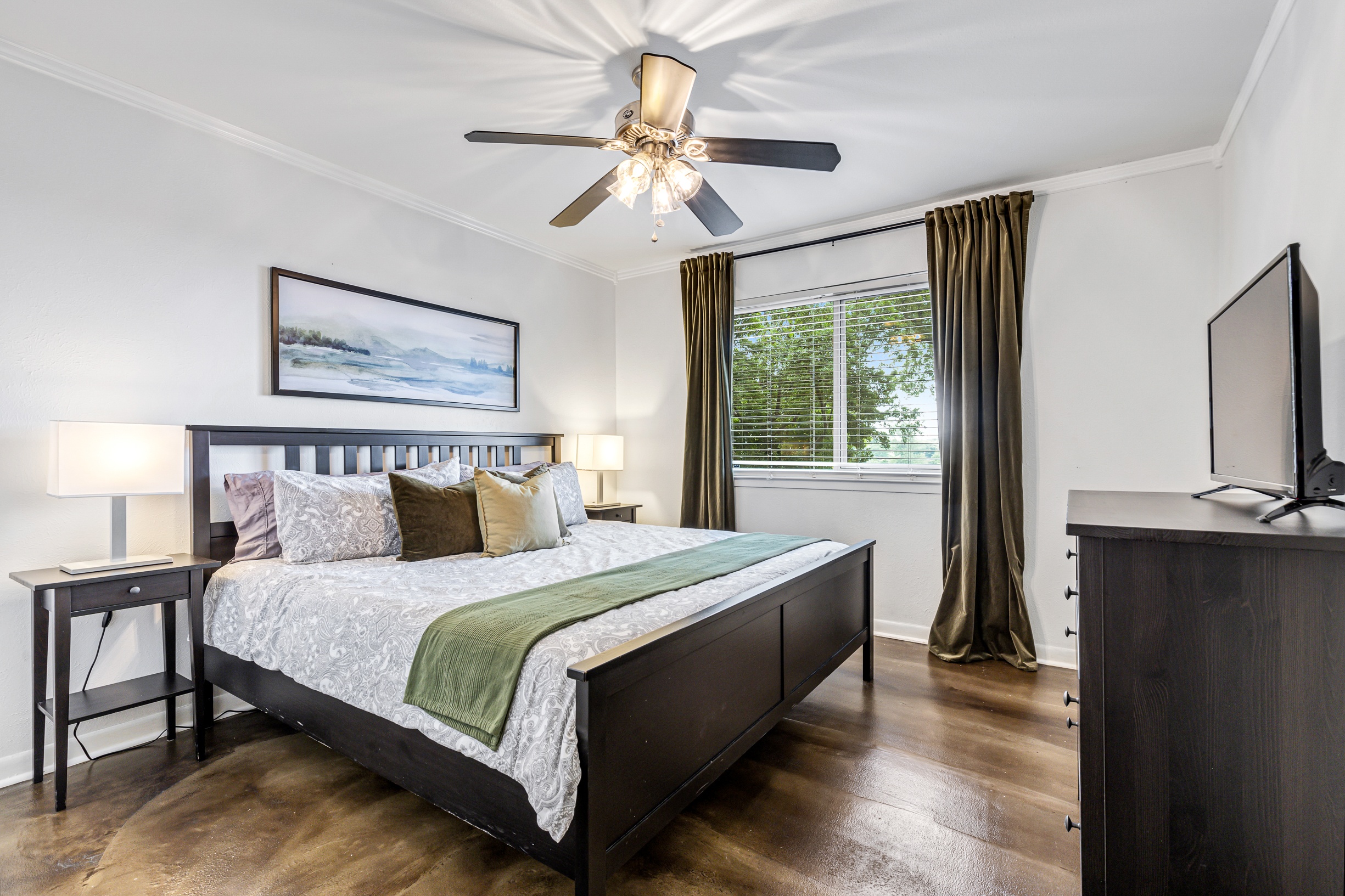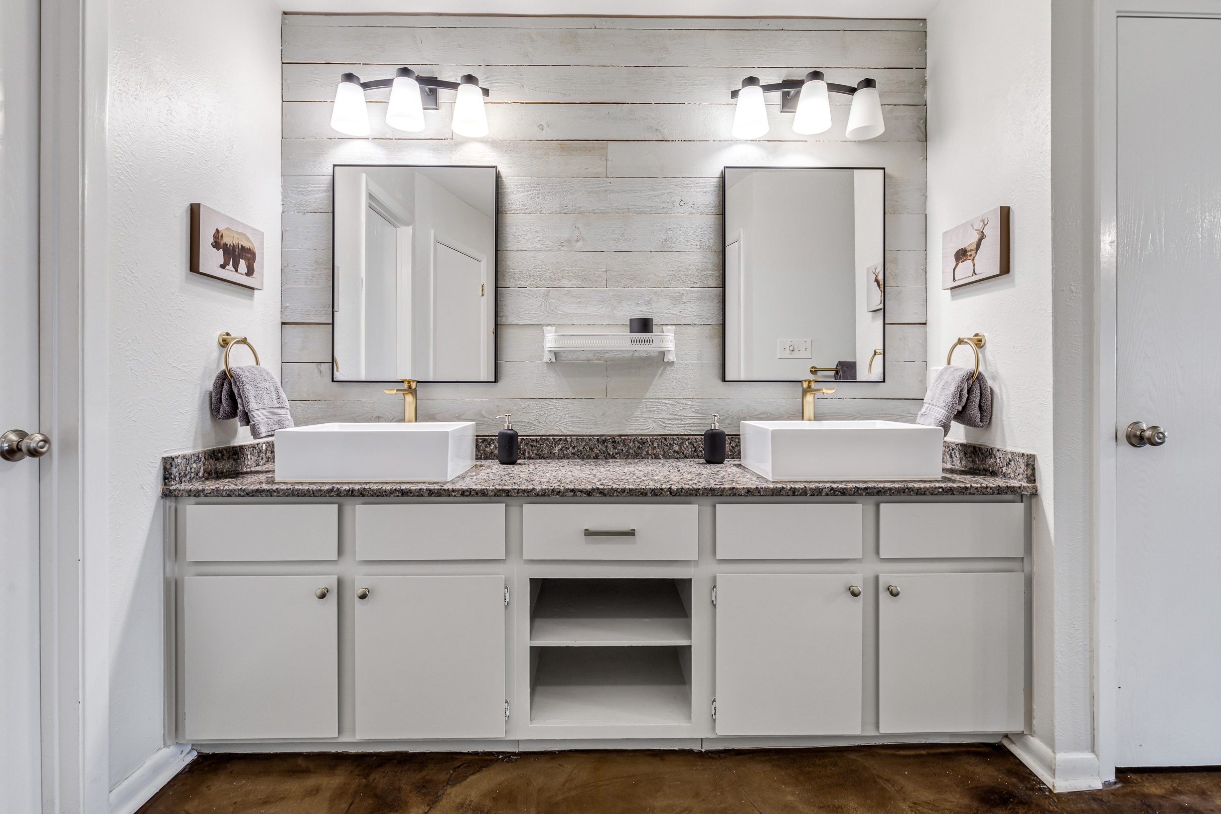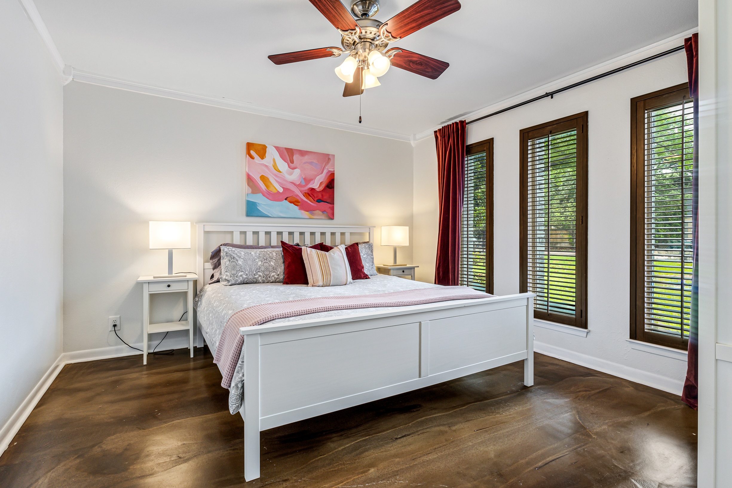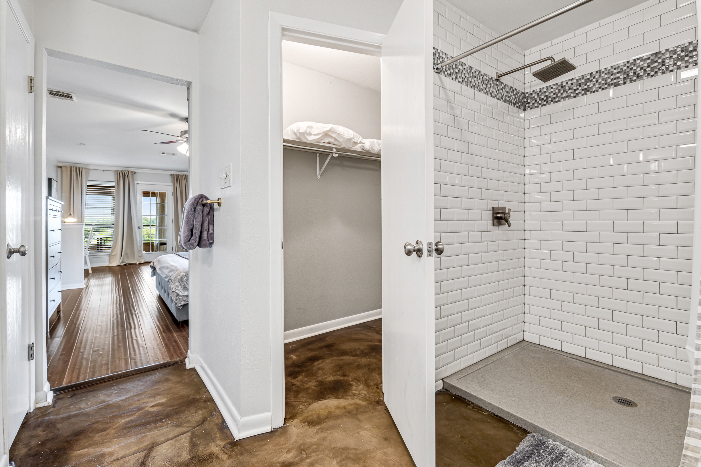 Please note that a $300 refundable security deposit is charged in addition to the total shown. Dogs are allowed with prior approval and a one time $240 pet fee. A beautiful remodeled home overlooking a small private lake. Enjoy the view from the deck, and still have easy highway access to downtown and the Domain. Home has 5 beds and sleeps up to 8 adults or 10 guests total. For the families, we have a pack and play, a high chair, as well as a few toys and games for the kids. The 2200sqft home has gorgeous stained concrete flooring throughout, updated kitchen & bathrooms, huge deck, and a sunroom facing the lake with lots of windows. The kitchen is stunning with all stainless steel appliances, gas range, granite, and glass tile. The bathrooms have custom glass tile tub & shower surrounds, granite counter tops and custom sink vessels. Of course the home has central air and heat throughout as well as ceiling fans in each room. The living room has plenty of seating, and the dining room accommodates up to 8 adults. The large deck has plenty of seating with a patio table and chairs. It truly is a beautiful view - especially at sunset! Please note that the fireplace is decorative only, and the garage is a small 1 car garage. The home has a maximum occupancy of 8 adults and 10 people total. City of Austin has an occupancy limit of 6 unrelated adults. Minimum age requirement of 25 years old. Cats are not allowed; dogs are allowed with prior approval and additional fee. The neighborhood pool, playground, tennis, and volleyball courts are only available for guests staying 30 days or longer. The small lake behind the home is privately owned and although it provides a beautiful view for your stay, guests are not allowed to go on the lake unless they join the recreation center. Minimal, we live a few houses away. The home is in a quiet residential neighborhood with a surprising lake view for being in Austin. It's tucked away yet close to major highways. Please note that the lake is just for the view, and there is no access allowed or possible from the home.