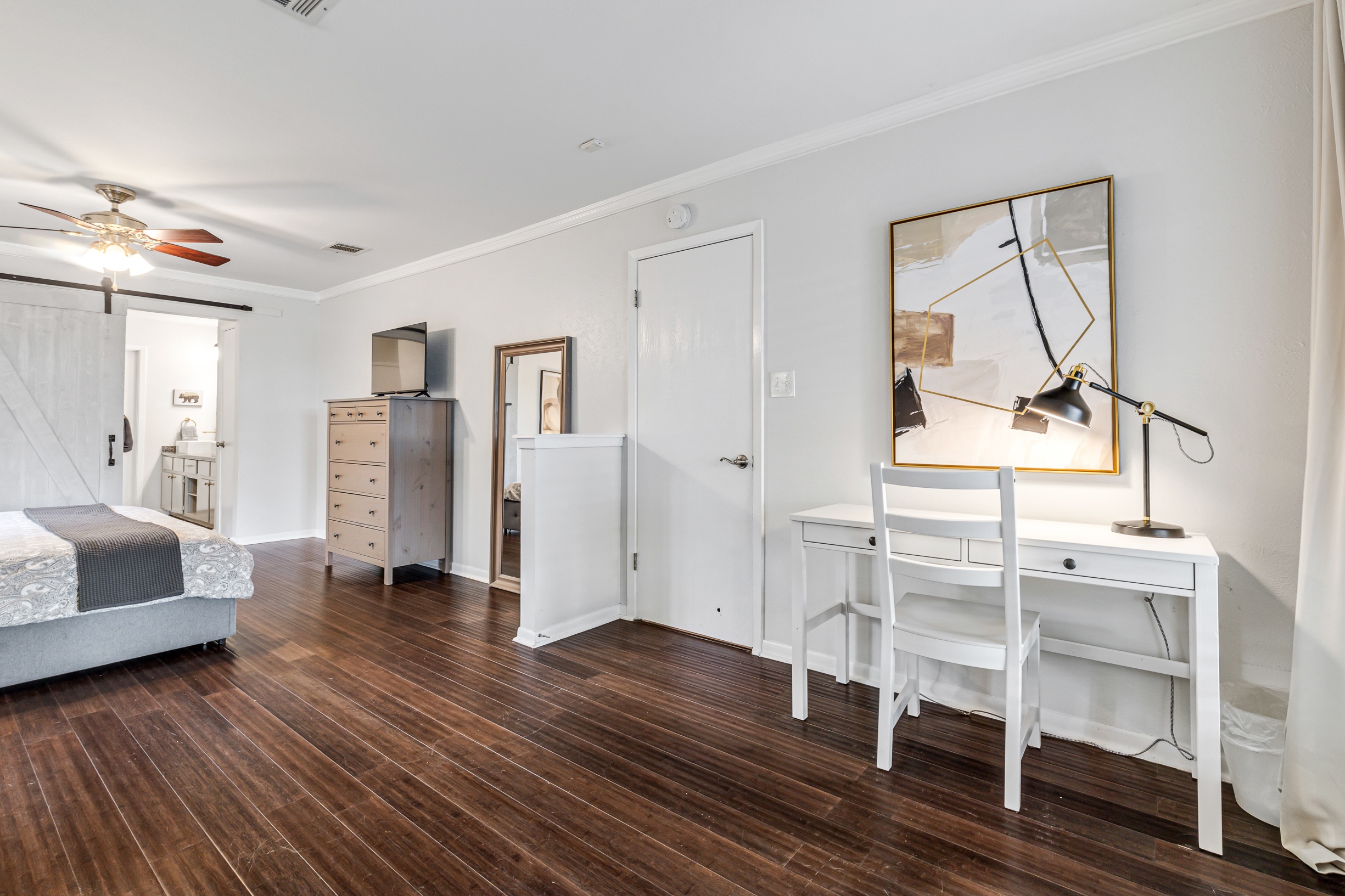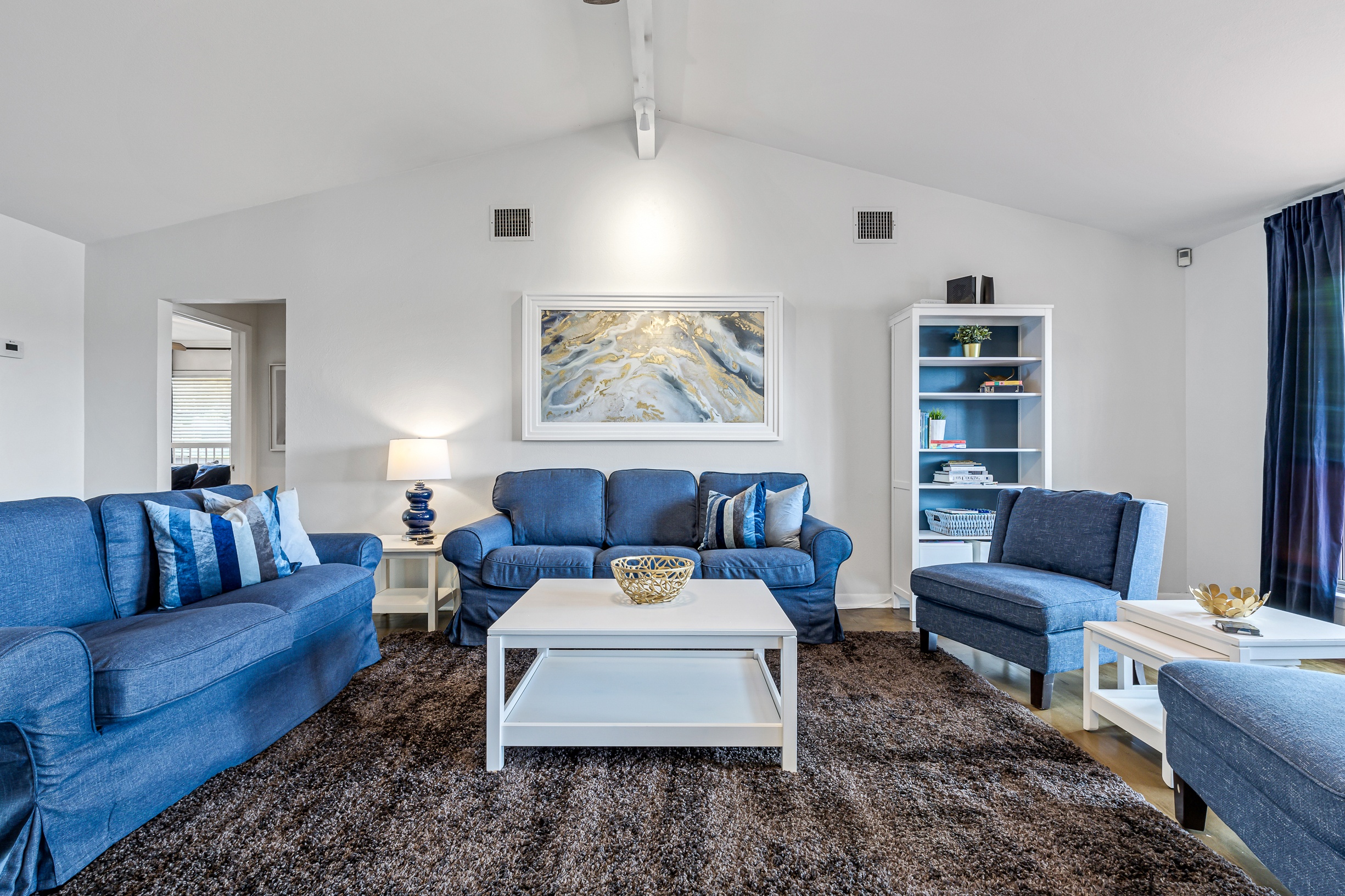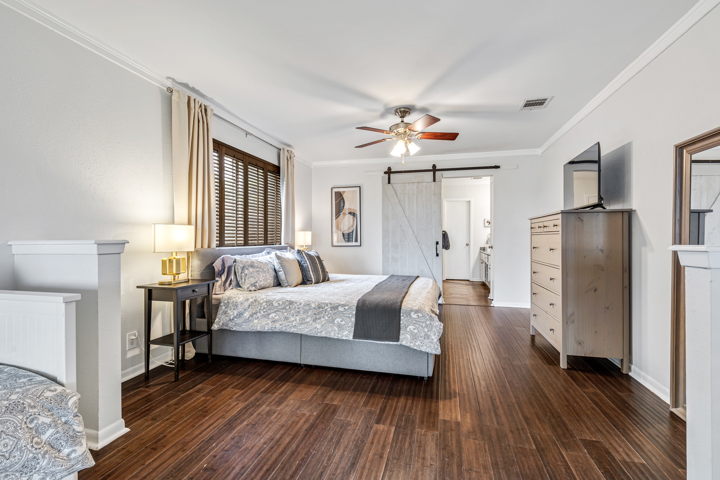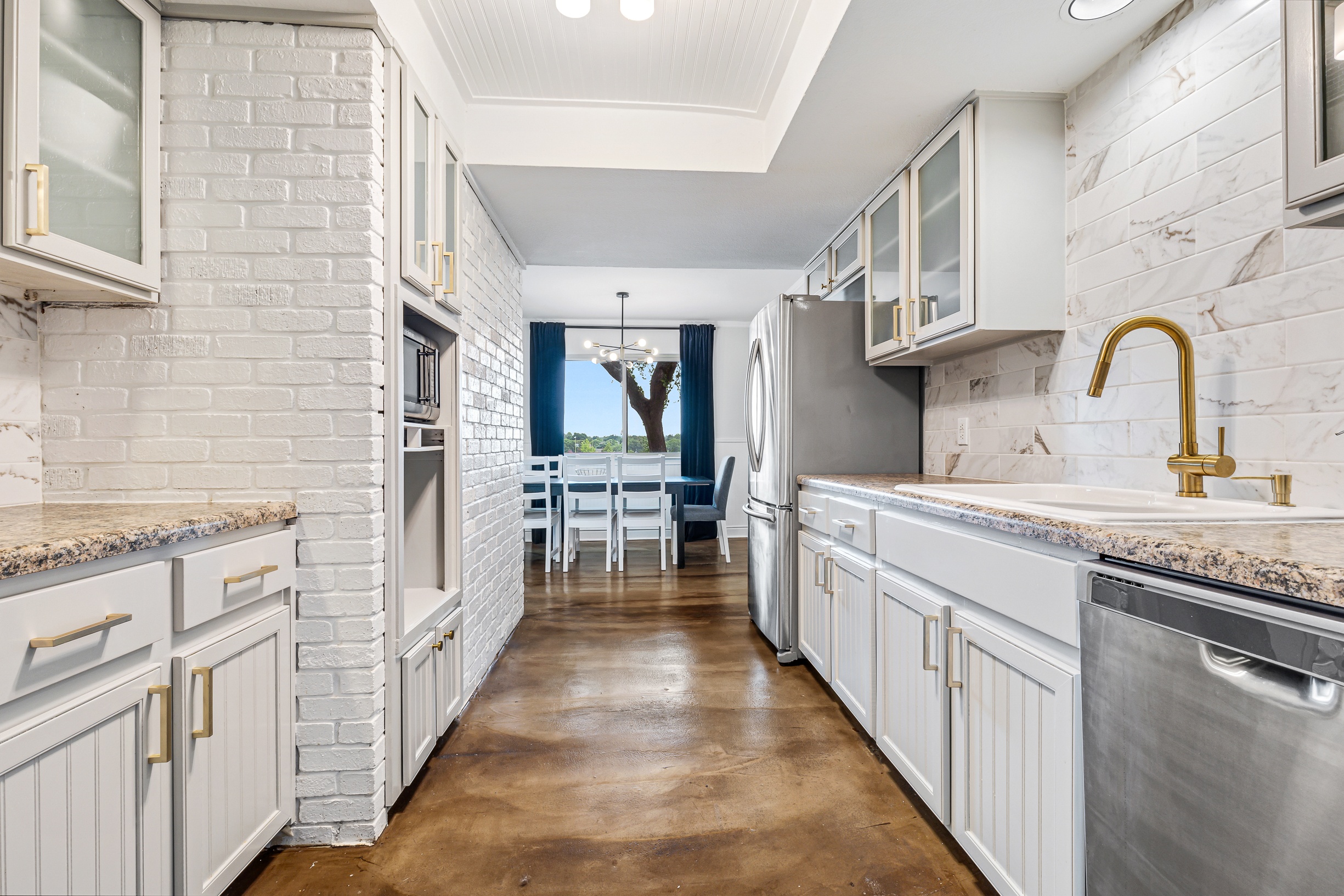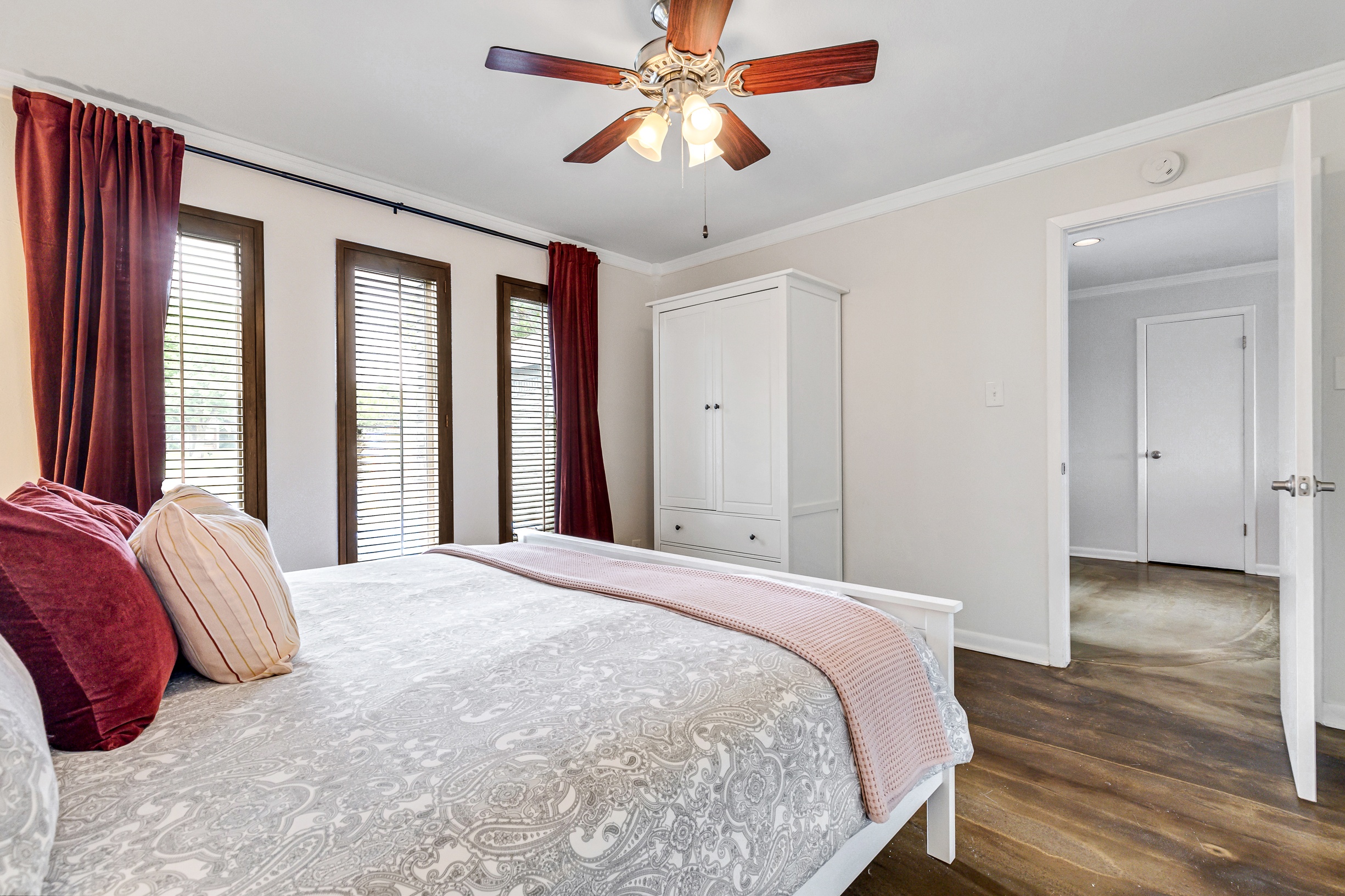 Please note that a $300 refundable security deposit is charged in addition to the total shown. Dogs are allowed with prior approval and a one time $240 pet fee. A beautiful remodeled home overlooking a small private lake. Enjoy the view from the deck, and still have easy highway access to downtown and the Domain. Home has 5 beds and sleeps up to 8 adults or 10 guests total. For the families, we have a pack and play, a high chair, as well as a few toys and games for the kids. The 2200sqft home has gorgeous stained concrete flooring throughout, updated kitchen & bathrooms, huge deck, and a sunroom facing the lake with lots of windows. The kitchen is stunning with all stainless steel appliances, gas range, granite, and glass tile. The bathrooms have custom glass tile tub & shower surrounds, granite counter tops and custom sink vessels. Of course the home has central air and heat throughout as well as ceiling fans in each room. The living room has plenty of seating, and the dining room accommodates up to 8 adults. The large deck has plenty of seating with a patio table and chairs. It truly is a beautiful view - especially at sunset! Please note that the fireplace is decorative only, and the garage is a small 1 car garage. The home has a maximum occupancy of 8 adults and 10 people total. City of Austin has an occupancy limit of 6 unrelated adults. Minimum age requirement of 25 years old. Cats are not allowed; dogs are allowed with prior approval and additional fee. The neighborhood pool, playground, tennis, and volleyball courts are only available for guests staying 30 days or longer. The small lake behind the home is privately owned and although it provides a beautiful view for your stay, guests are not allowed to go on the lake unless they join the recreation center. Minimal, we live a few houses away. The home is in a quiet residential neighborhood with a surprising lake view for being in Austin. It's tucked away yet close to major highways. Please note that the lake is just for the view, and there is no access allowed or possible from the home.