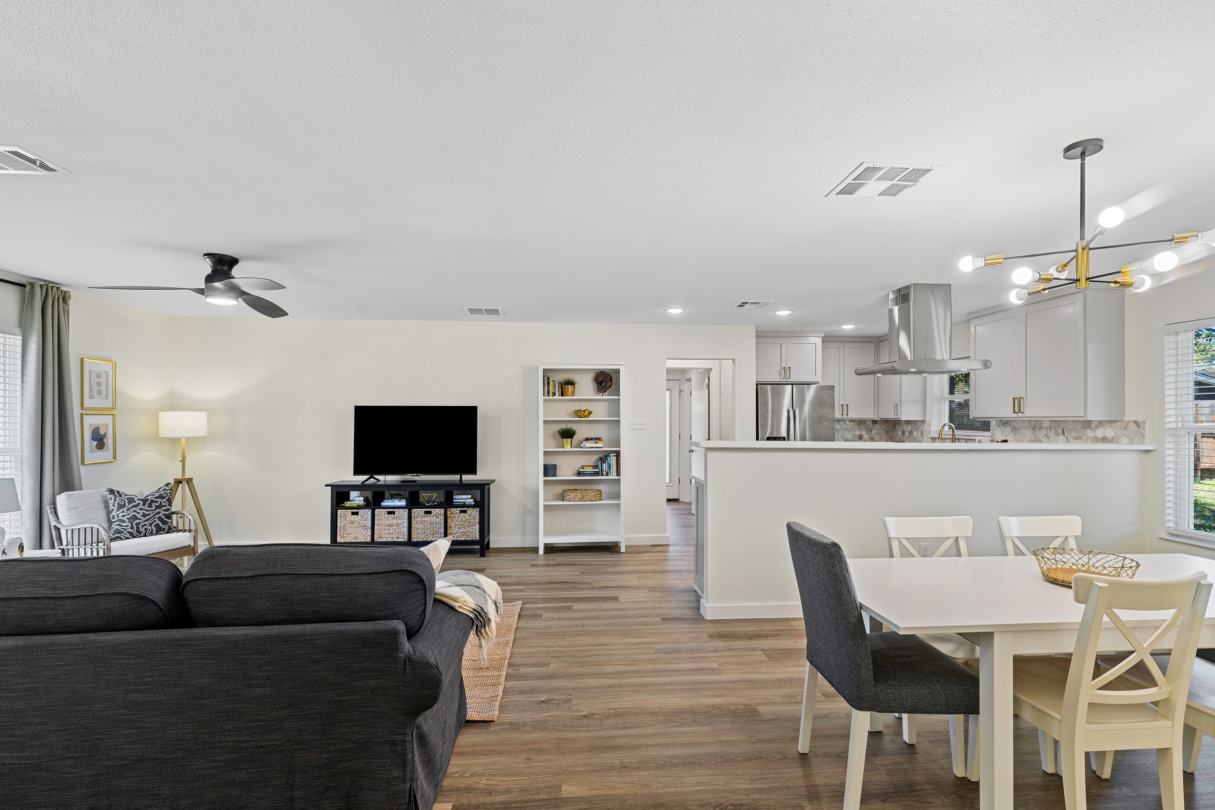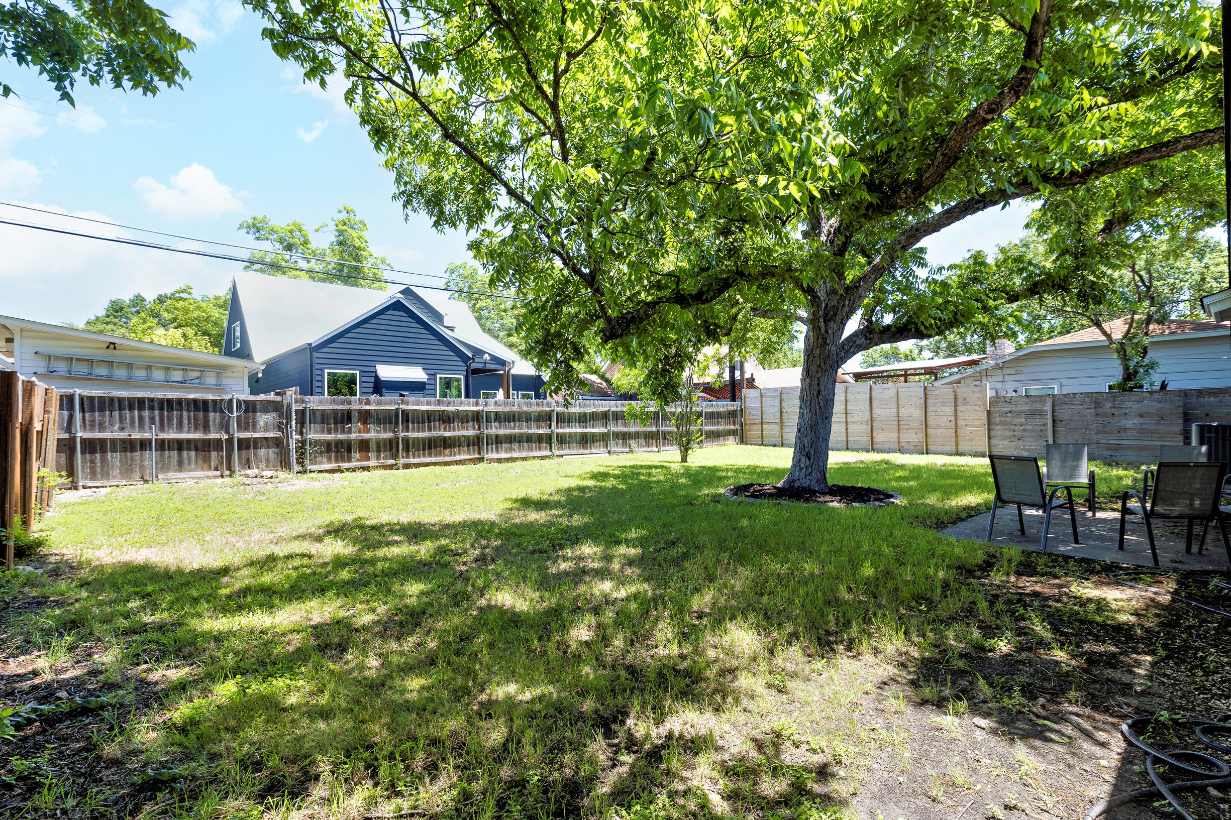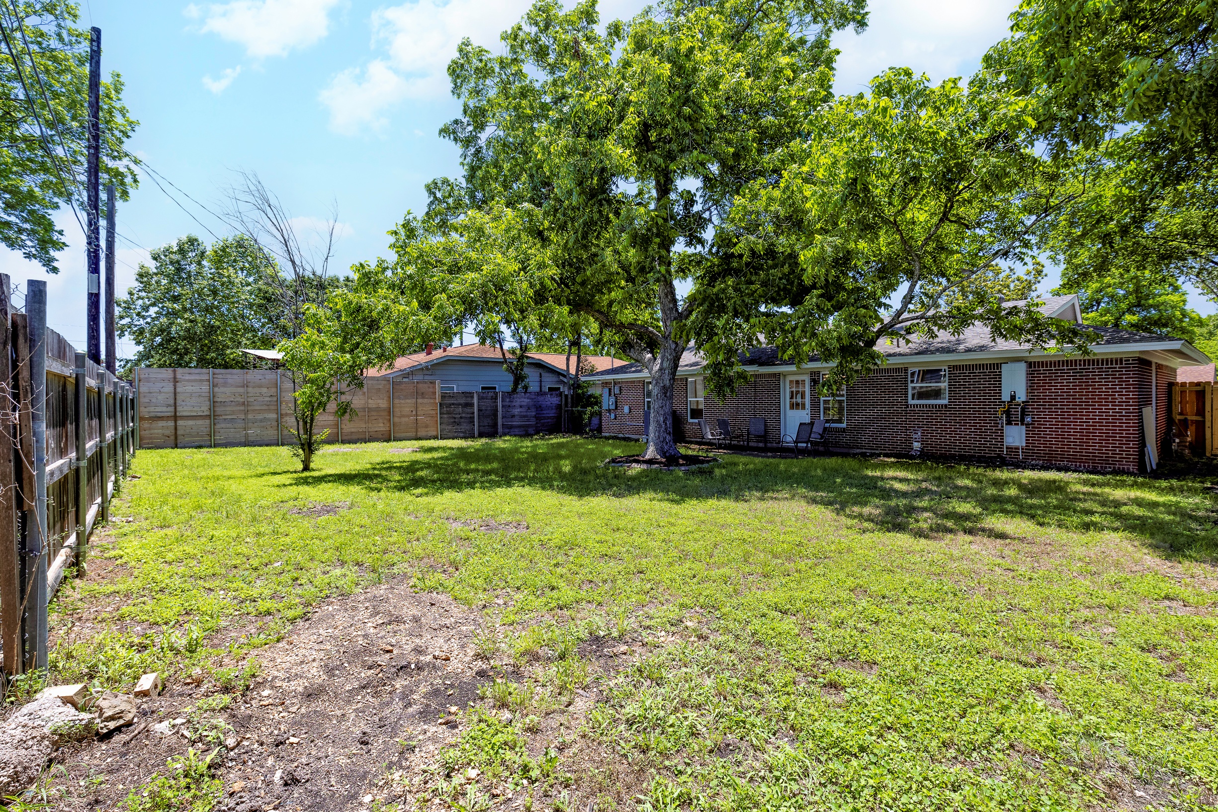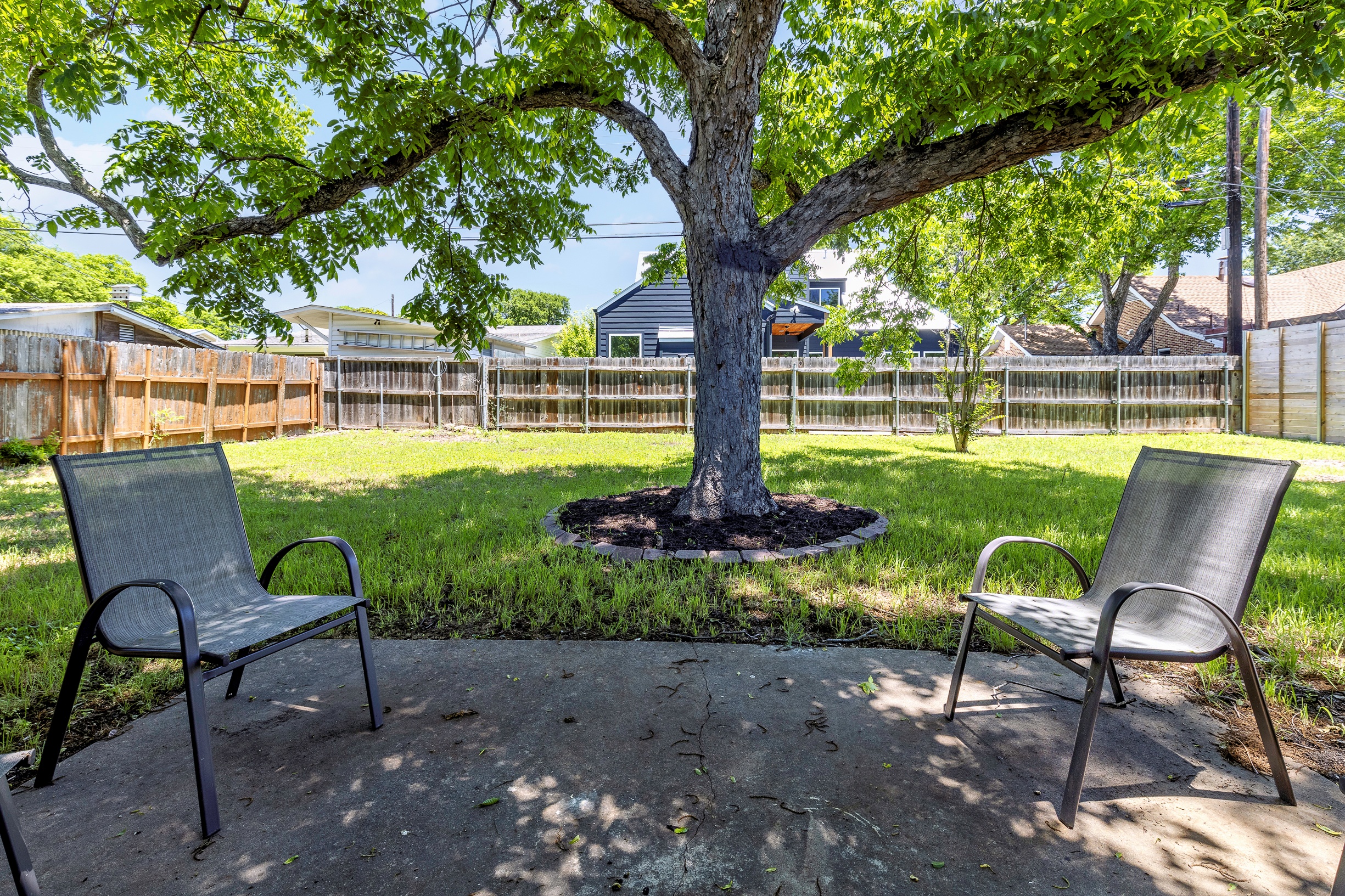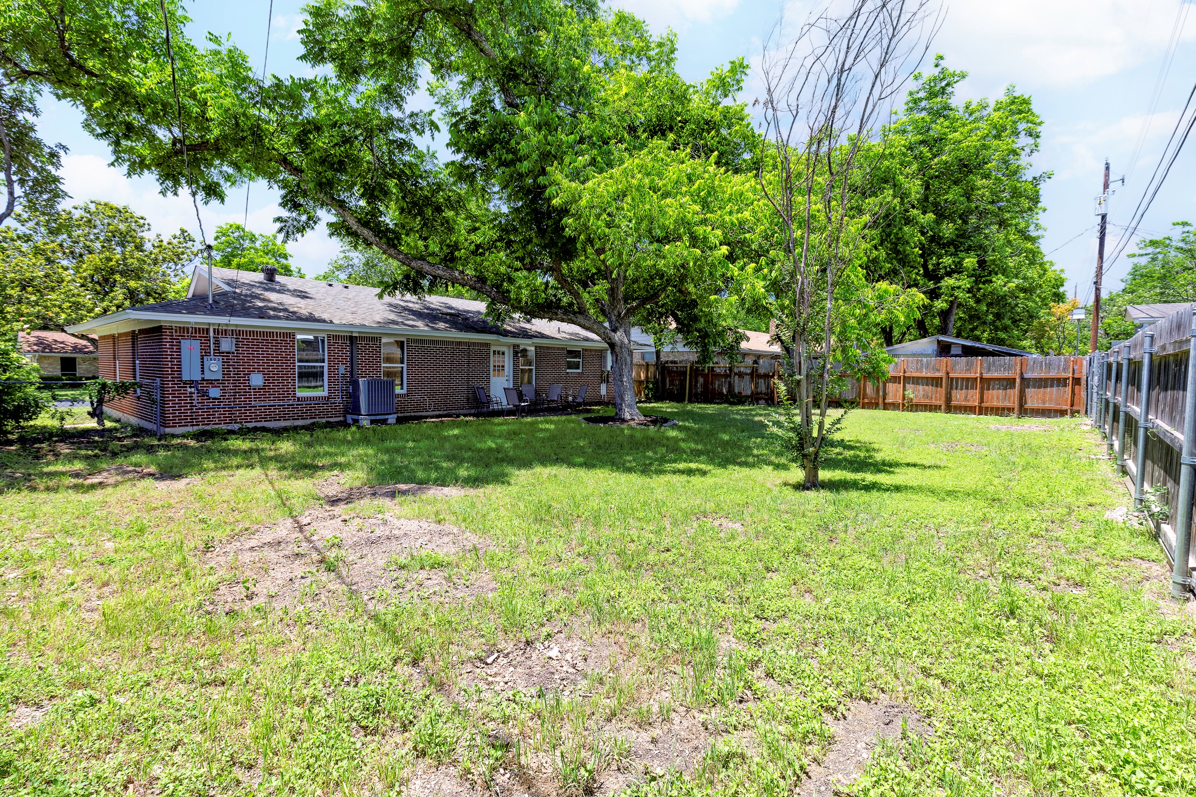 Please note that a $300 refundable security deposit is charged in addition to the total shown. Dogs are allowed with prior approval and a one time $240 pet fee. Beautiful 1 story, 1200 square foot home completely remodeled in 2024 next to Brentwood Park. The home has an updated kitchen complete with stone counters, stainless steel appliances, stone backsplash, and wood-like flooring. The bathrooms have updated stone counters, as well as updated tile, faucets, fixtures, lights, etc... The home has 1 king bed in the primary bedroom, 2 queen beds in each of the secondary bedrooms, and a separate small office with 2 desks. There is a washer and dryer in the laundry room. The backyard boasts a large fenced yard with a small patio with seating. We have high speed internet, and streaming TV services are provided with Disney+, Hulu, and ESPN. Guests are welcome to use their own streaming services as well. The home is located next to Brentwood Neighborhood Park and within a few blocks of the intersection of Burnet Rd & 2222 - close to so much! If you don't feel like cooking the home is a short walk to great Austin food. BBQ, home cooking, and a neighborhood deli are all nearby. The home is ideally situated near the Crestview Rail station which takes you downtown, as well as bus lines running throughout Austin. Maximum occupancy is 6 people total. Primary Bedroom: King bed 2nd Bedroom: Queen bed 3rd Bedroom: Queen Bed Guests have access to the entire home and yard. There to no access to the garage.