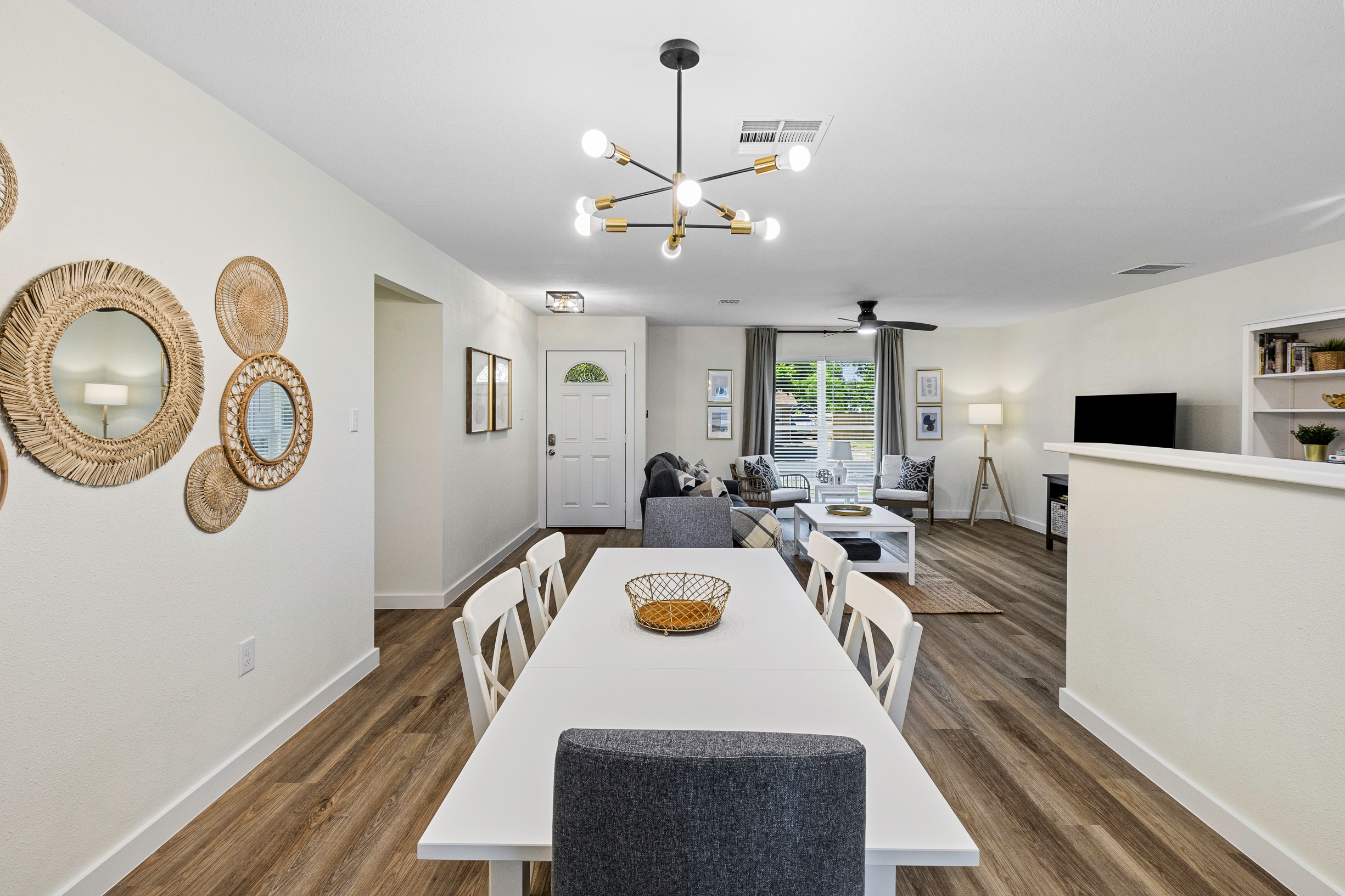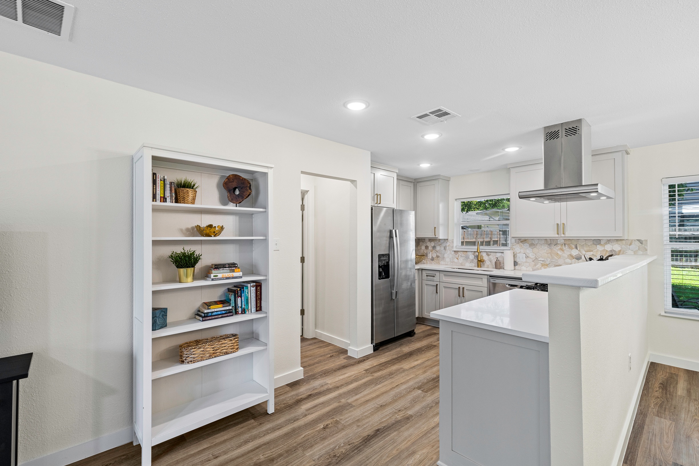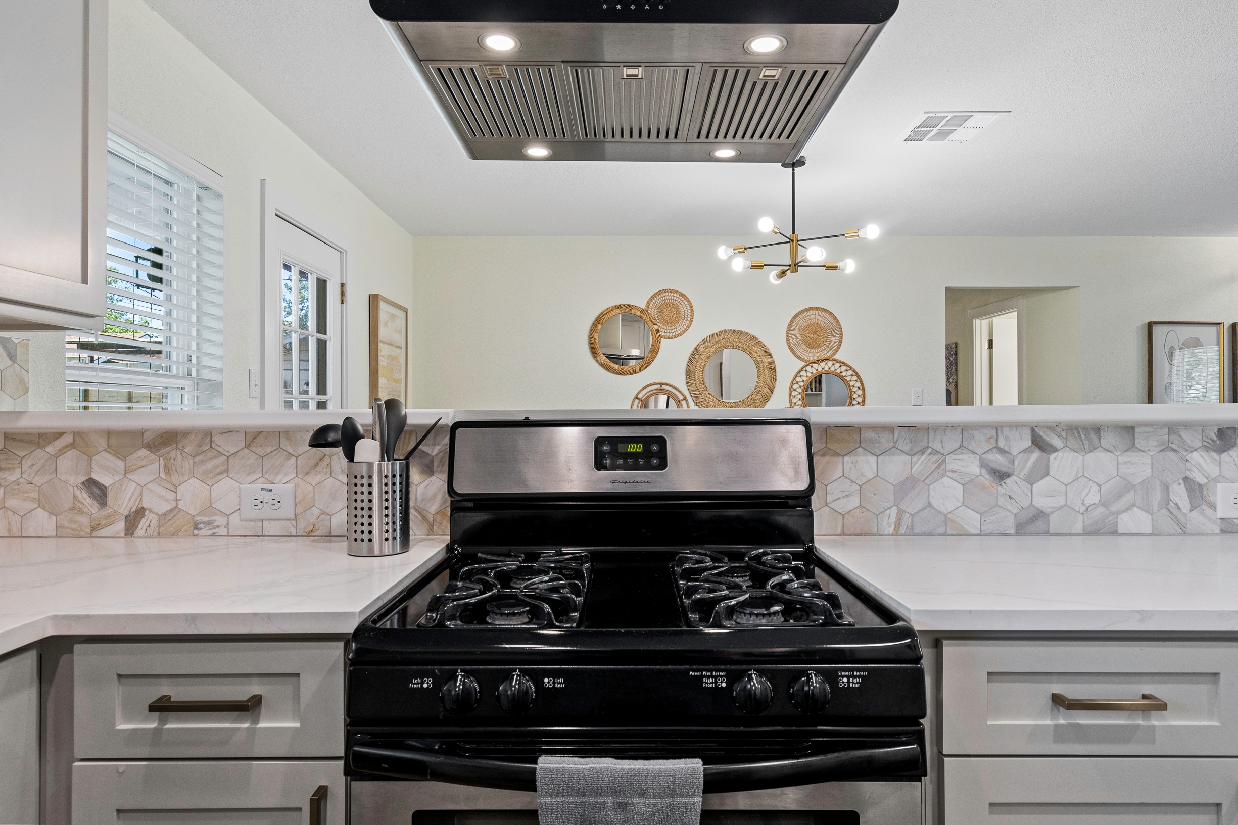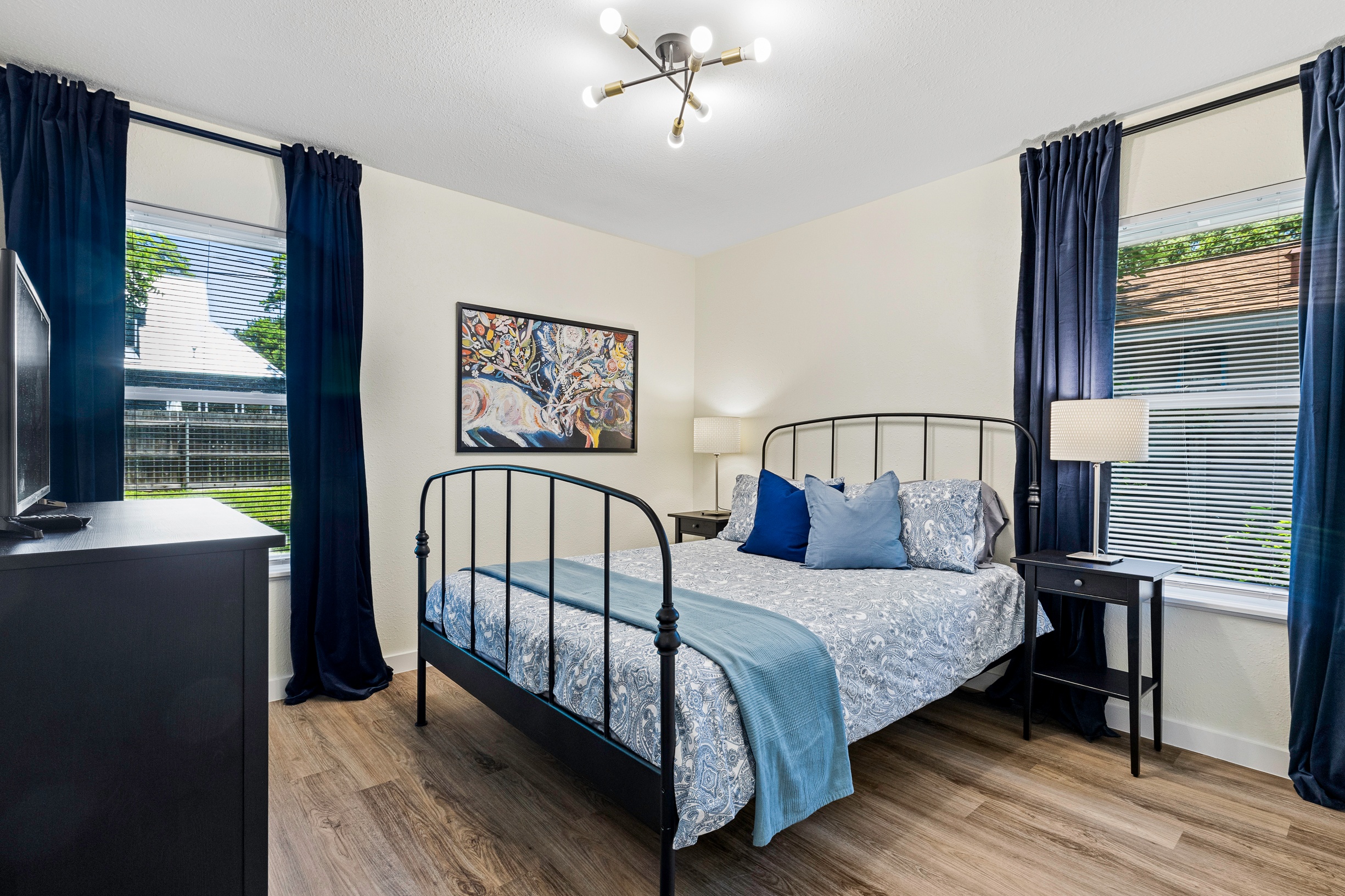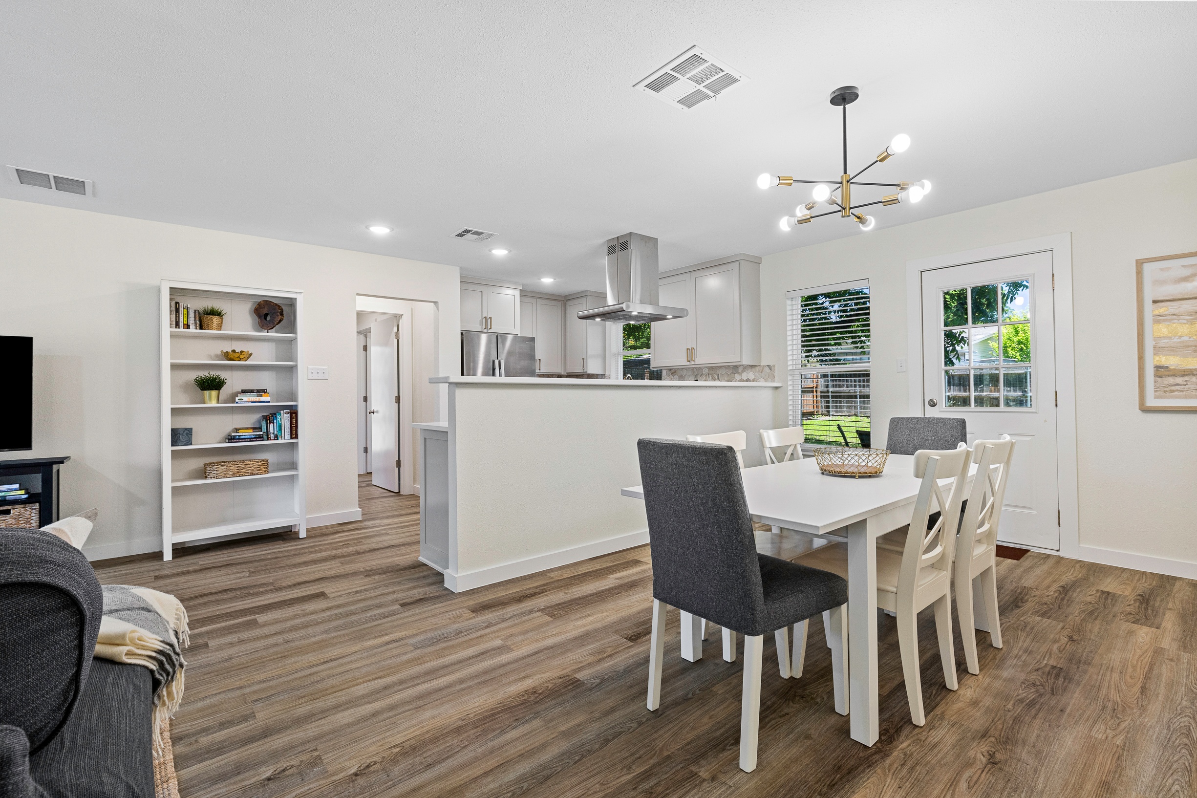Please note that a $300 refundable security deposit is charged in addition to the total shown. Dogs are allowed with prior approval and a one time $240 pet fee. Beautiful 1 story, 1200 square foot home completely remodeled in 2024 next to Brentwood Park. The home has an updated kitchen complete with stone counters, stainless steel appliances, stone backsplash, and wood-like flooring. The bathrooms have updated stone counters, as well as updated tile, faucets, fixtures, lights, etc... The home has 1 king bed in the primary bedroom, 2 queen beds in each of the secondary bedrooms, and a separate small office with 2 desks. There is a washer and dryer in the laundry room. The backyard boasts a large fenced yard with a small patio with seating. We have high speed internet, and streaming TV services are provided with Disney+, Hulu, and ESPN. Guests are welcome to use their own streaming services as well. The home is located next to Brentwood Neighborhood Park and within a few blocks of the intersection of Burnet Rd & 2222 - close to so much! If you don't feel like cooking the home is a short walk to great Austin food. BBQ, home cooking, and a neighborhood deli are all nearby. The home is ideally situated near the Crestview Rail station which takes you downtown, as well as bus lines running throughout Austin. Maximum occupancy is 6 people total. Primary Bedroom: King bed 2nd Bedroom: Queen bed 3rd Bedroom: Queen Bed Guests have access to the entire home and yard. There to no access to the garage.