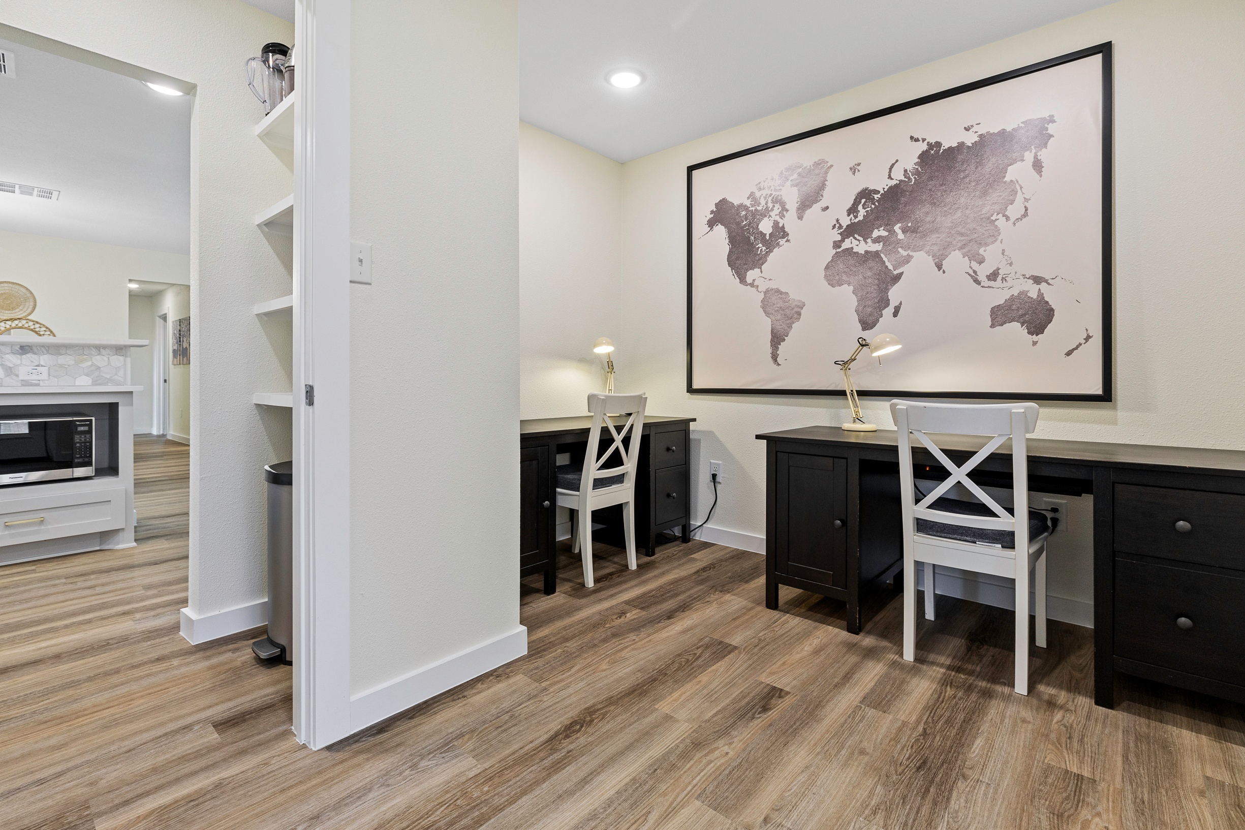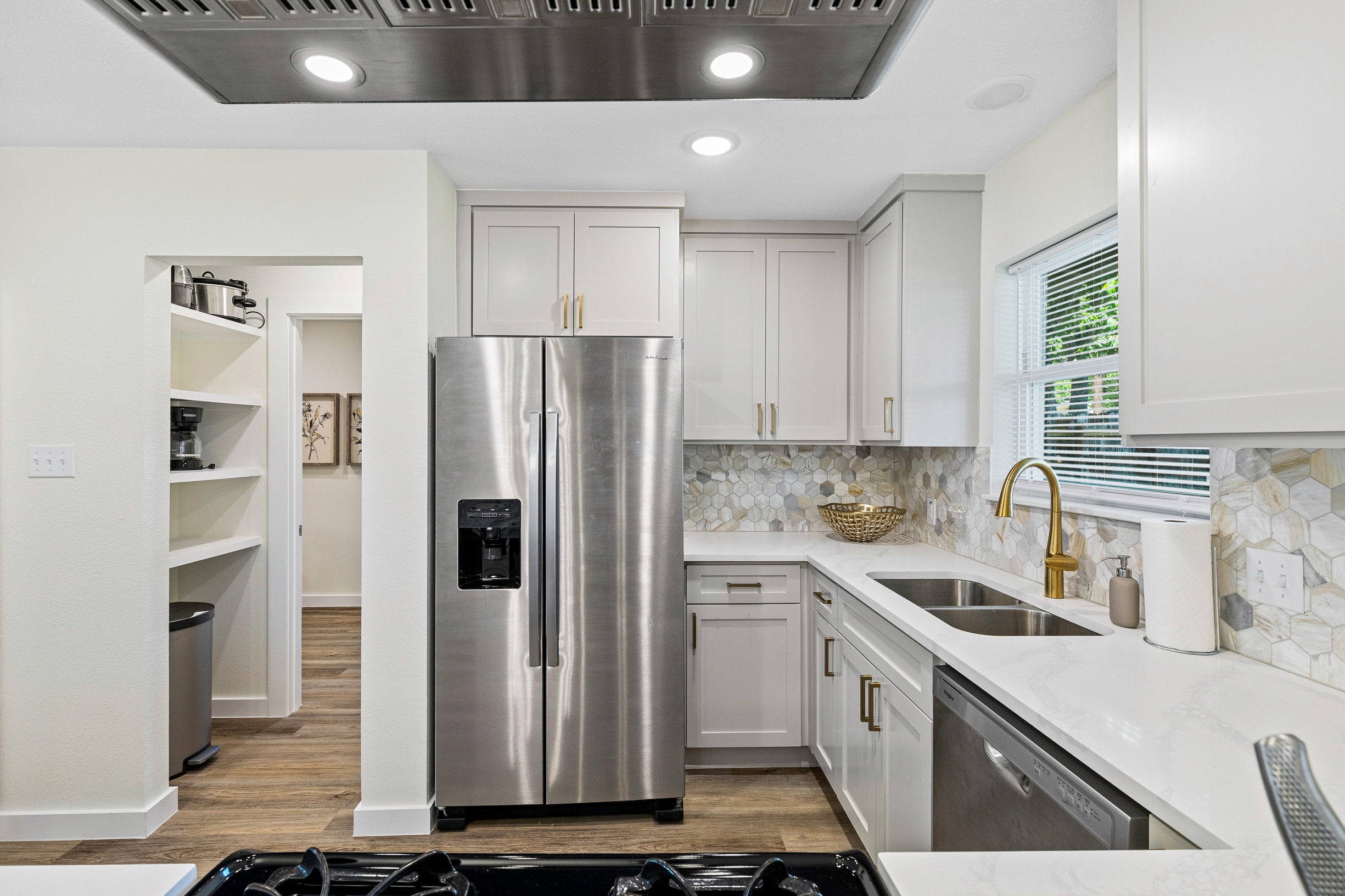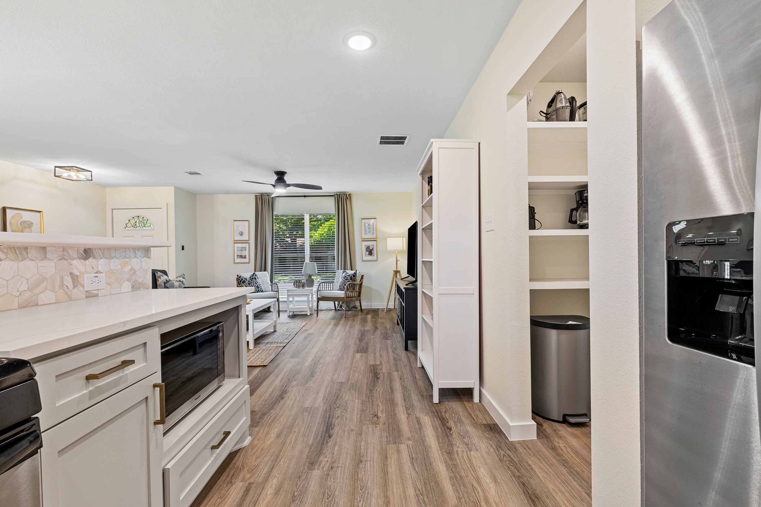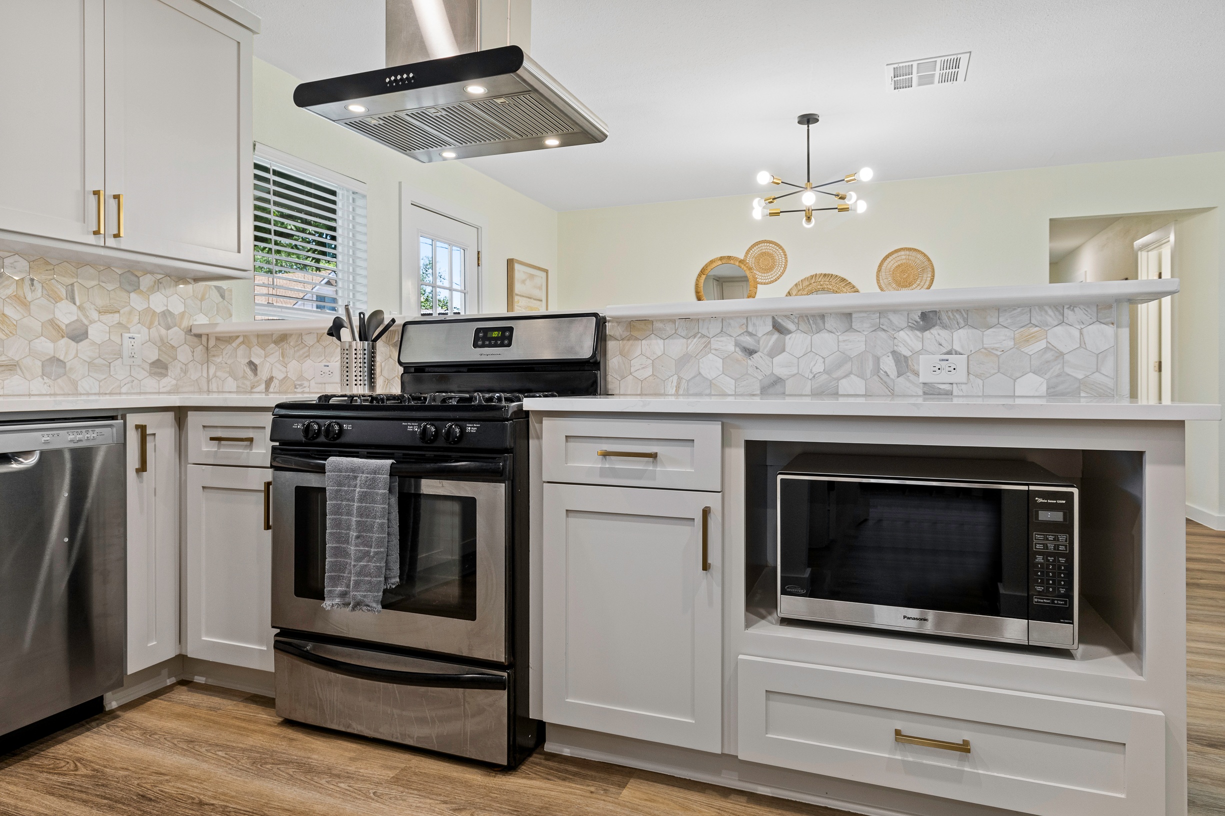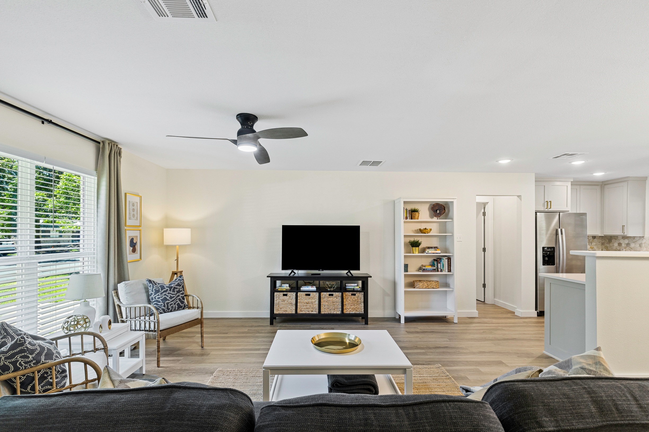 Please note that a $300 refundable security deposit is charged in addition to the total shown. Dogs are allowed with prior approval and a one time $240 pet fee. Beautiful 1 story, 1200 square foot home completely remodeled in 2024 next to Brentwood Park. The home has an updated kitchen complete with stone counters, stainless steel appliances, stone backsplash, and wood-like flooring. The bathrooms have updated stone counters, as well as updated tile, faucets, fixtures, lights, etc... The home has 1 king bed in the primary bedroom, 2 queen beds in each of the secondary bedrooms, and a separate small office with 2 desks. There is a washer and dryer in the laundry room. The backyard boasts a large fenced yard with a small patio with seating. We have high speed internet, and streaming TV services are provided with Disney+, Hulu, and ESPN. Guests are welcome to use their own streaming services as well. The home is located next to Brentwood Neighborhood Park and within a few blocks of the intersection of Burnet Rd & 2222 - close to so much! If you don't feel like cooking the home is a short walk to great Austin food. BBQ, home cooking, and a neighborhood deli are all nearby. The home is ideally situated near the Crestview Rail station which takes you downtown, as well as bus lines running throughout Austin. Maximum occupancy is 6 people total. Primary Bedroom: King bed 2nd Bedroom: Queen bed 3rd Bedroom: Queen Bed Guests have access to the entire home and yard. There to no access to the garage.