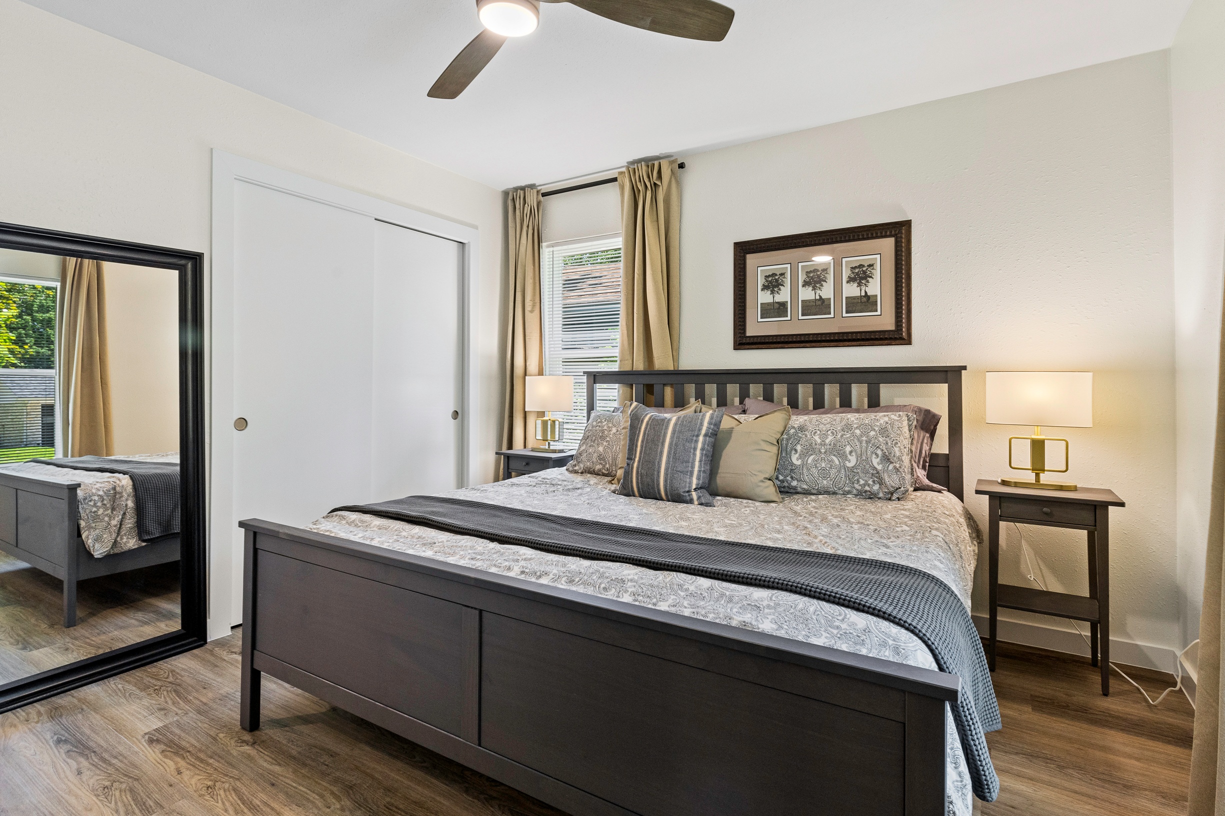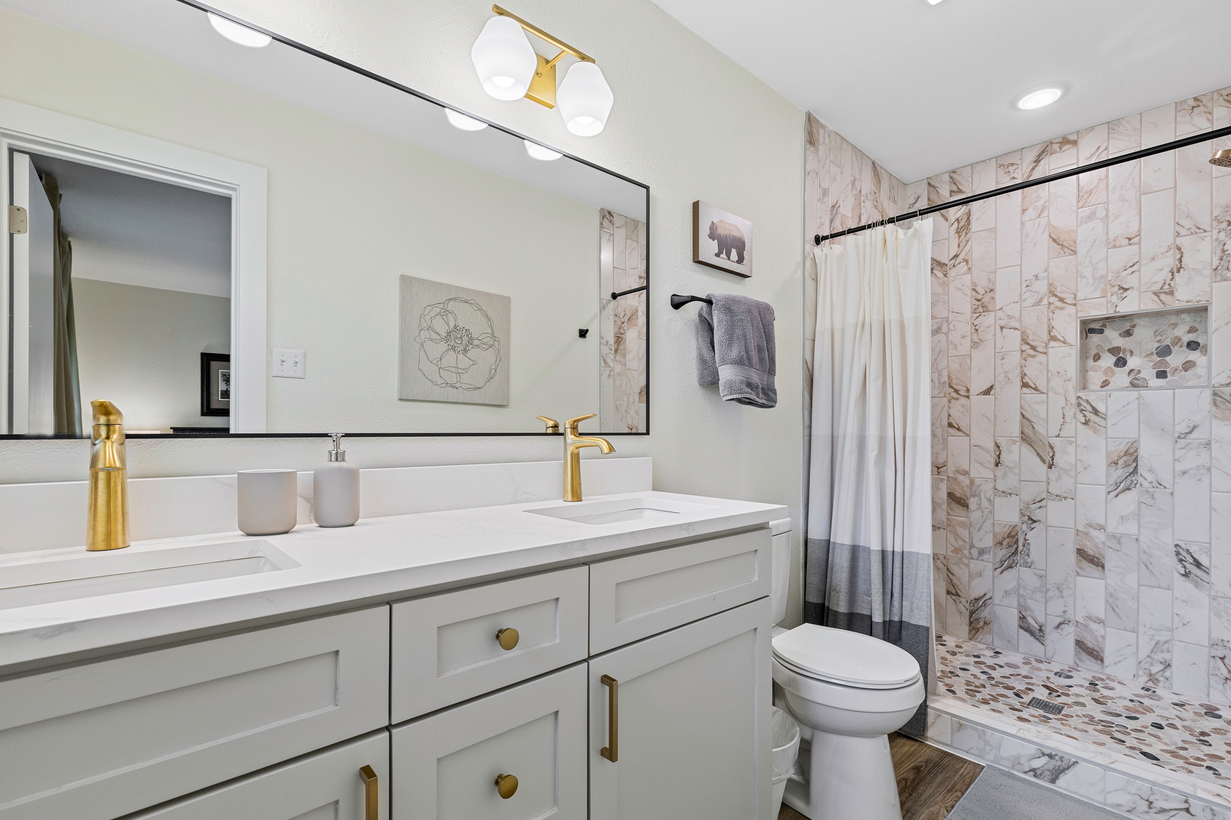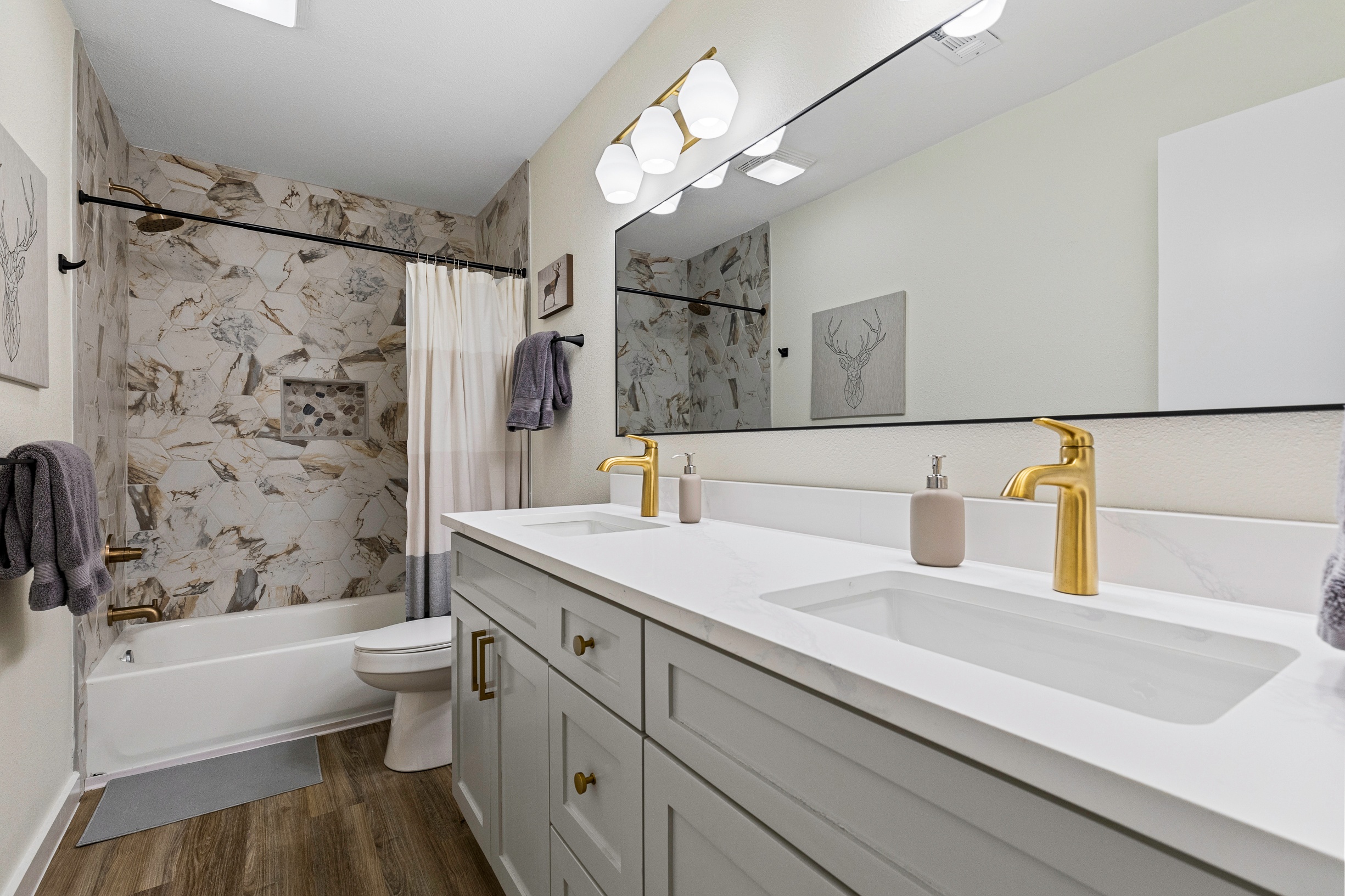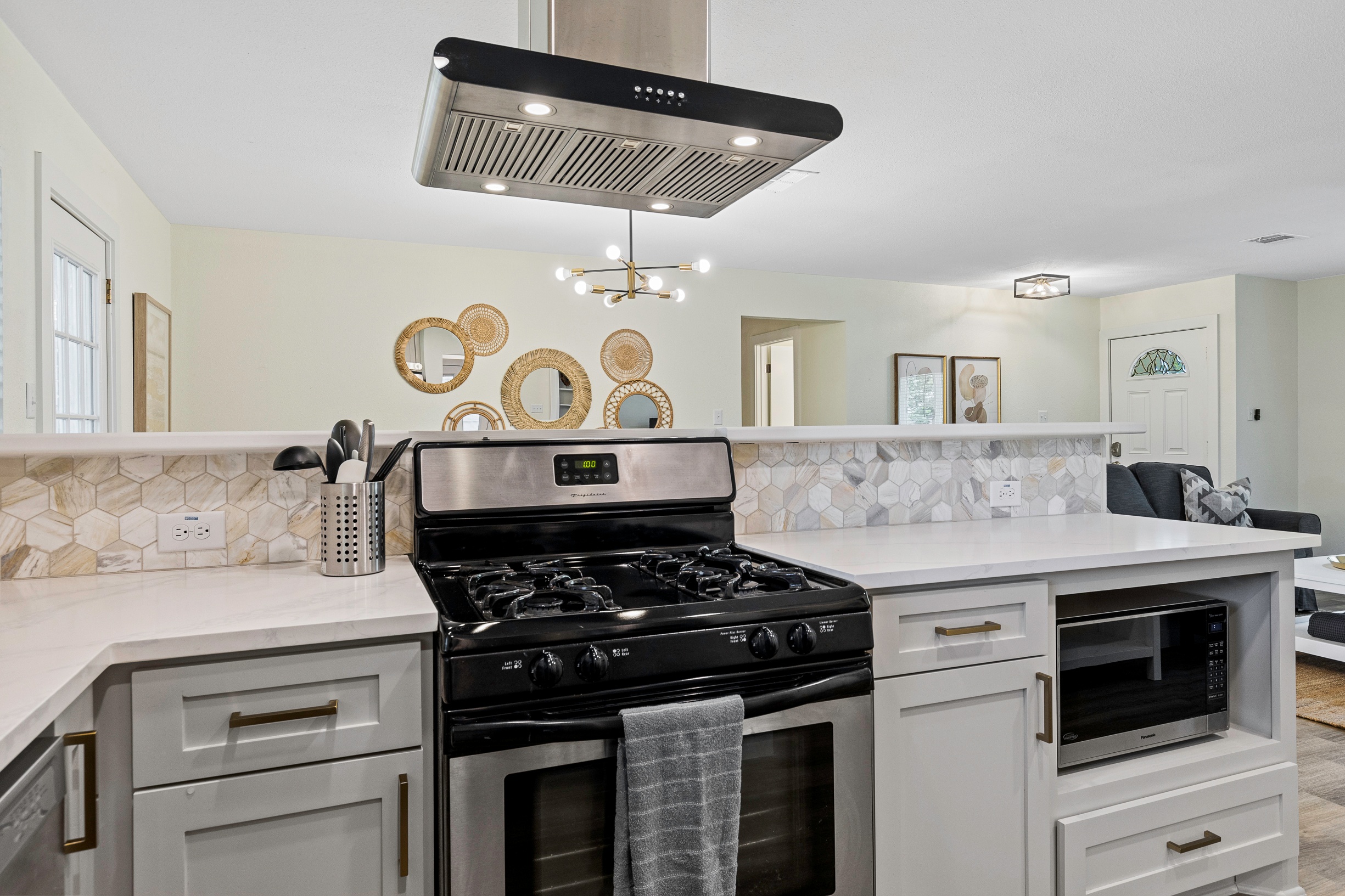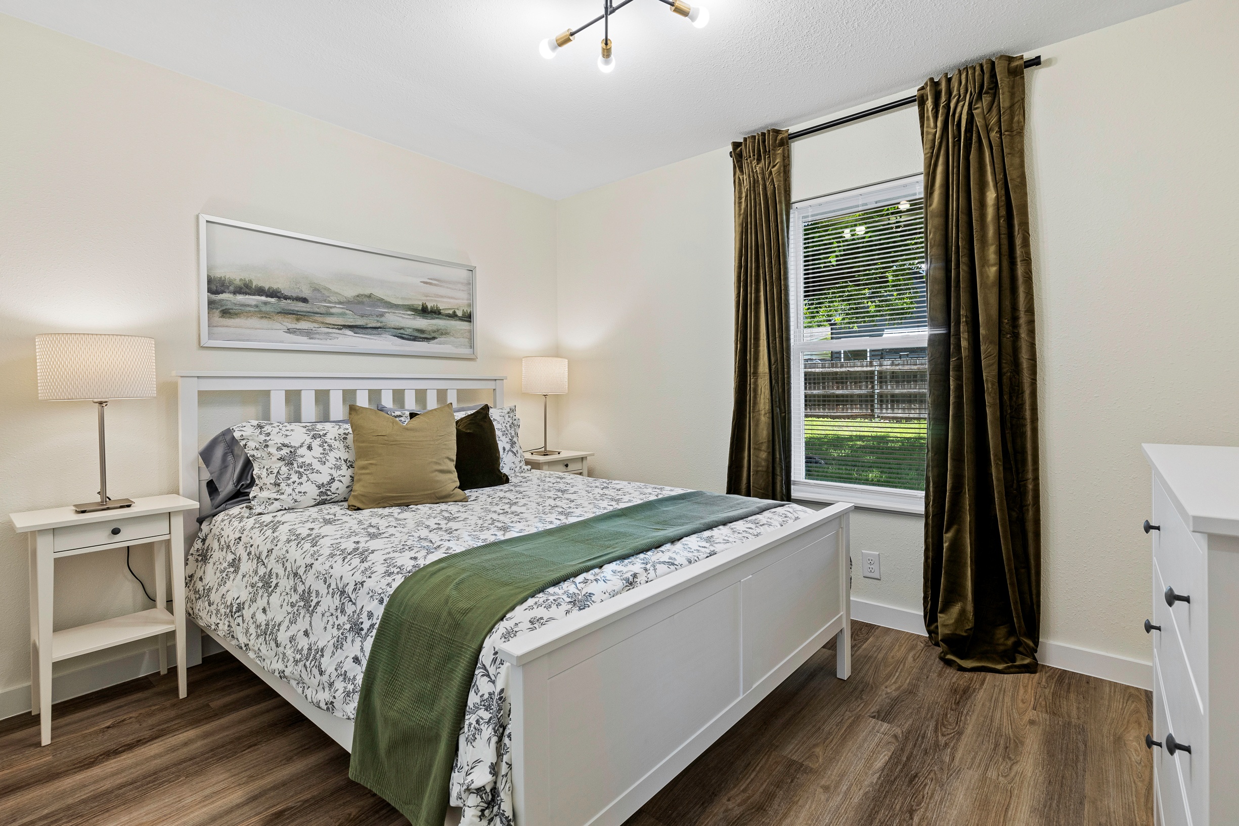 Please note that a $300 refundable security deposit is charged in addition to the total shown. Dogs are allowed with prior approval and a one time $240 pet fee. Beautiful 1 story, 1200 square foot home completely remodeled in 2024 next to Brentwood Park. The home has an updated kitchen complete with stone counters, stainless steel appliances, stone backsplash, and wood-like flooring. The bathrooms have updated stone counters, as well as updated tile, faucets, fixtures, lights, etc... The home has 1 king bed in the primary bedroom, 2 queen beds in each of the secondary bedrooms, and a separate small office with 2 desks. There is a washer and dryer in the laundry room. The backyard boasts a large fenced yard with a small patio with seating. We have high speed internet, and streaming TV services are provided with Disney+, Hulu, and ESPN. Guests are welcome to use their own streaming services as well. The home is located next to Brentwood Neighborhood Park and within a few blocks of the intersection of Burnet Rd & 2222 - close to so much! If you don't feel like cooking the home is a short walk to great Austin food. BBQ, home cooking, and a neighborhood deli are all nearby. The home is ideally situated near the Crestview Rail station which takes you downtown, as well as bus lines running throughout Austin. Maximum occupancy is 6 people total. Primary Bedroom: King bed 2nd Bedroom: Queen bed 3rd Bedroom: Queen Bed Guests have access to the entire home and yard. There to no access to the garage.